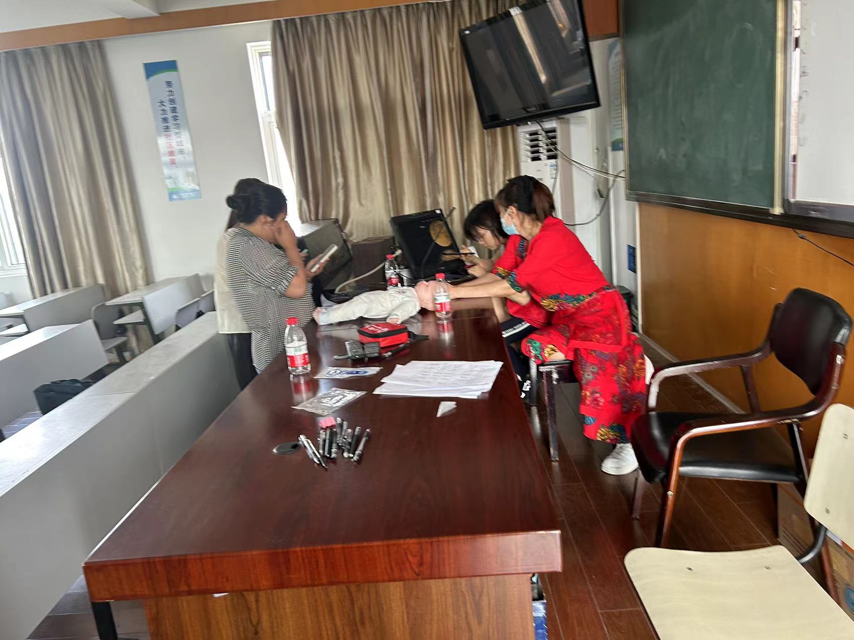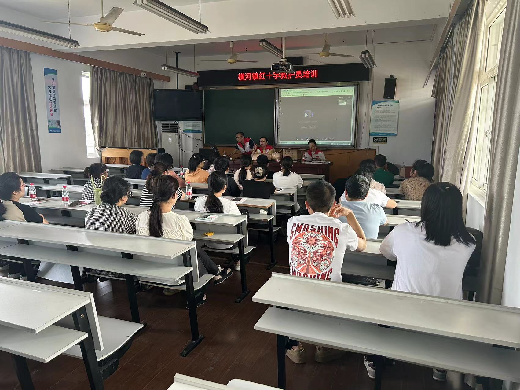 5月25日,横河镇应急救护培训在横河成校开展,主要培训课程为心肺复苏操作、AED使用练习及创伤救护。