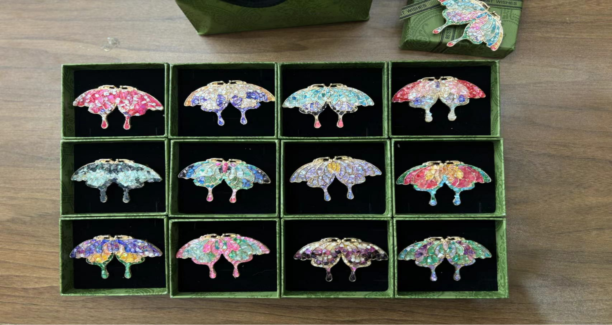 一尺螺钿,一尺光阴。两个小时的时光在指尖匆匆流淌,经过认真制作,流光溢彩的螺片被镶嵌成了一枚枚精美别致的胸针。