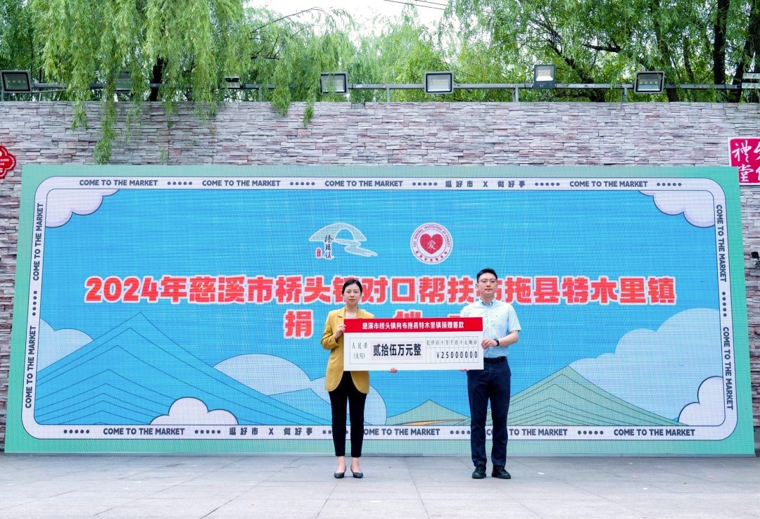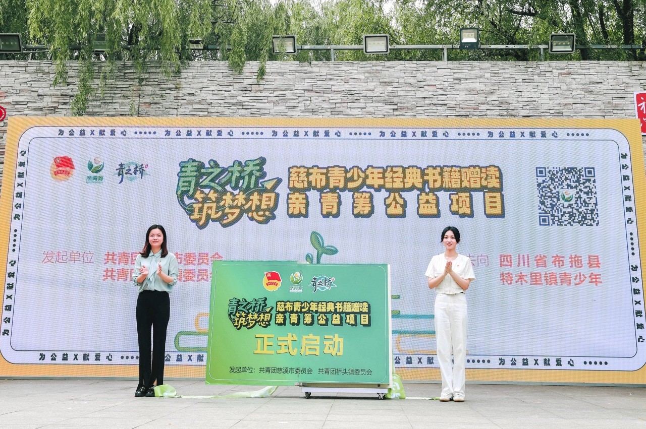 活动现场,共青团慈溪市委员会、共青团桥头镇委员会联合发布青之桥·筑梦想慈布青少年经典书籍赠读亲青筹公益项目。通过该项目,此次义卖所得将为布拖青少年捐赠经典书籍,以书为桥、助力梦想。现场同步举行了桥头镇对口帮扶布拖县特木里镇的捐赠仪式,由桥头镇人民政府向结对镇捐赠善款25万元。