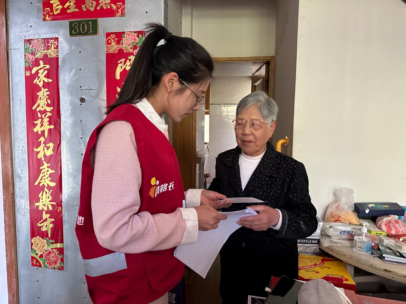 在办理完所有手续后,周慧芝第一时间将好消息告诉了朱观娥。她仔细叮嘱朱阿姨下次发票要保留好,朱观娥感激不已,连连称赞周慧芝是个好网格员,对她的帮助表示衷心的感谢。