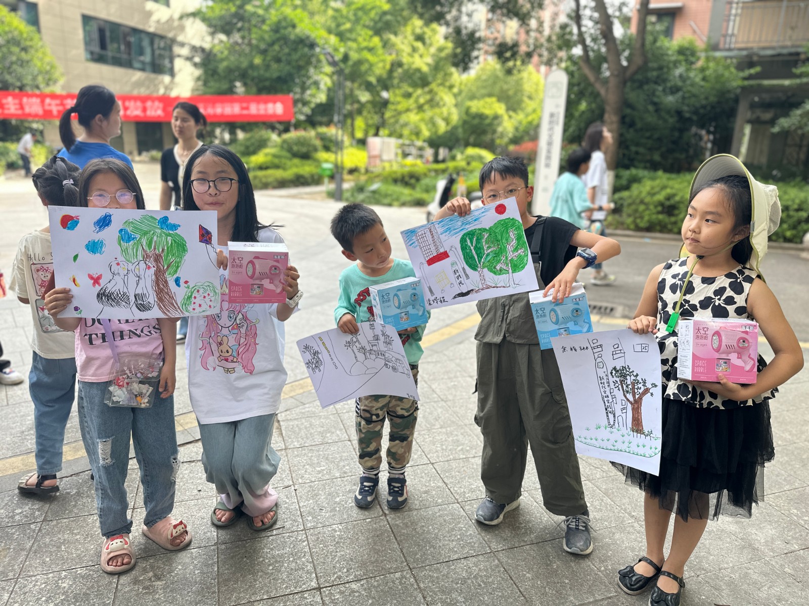 成荫的绿树,草丛里的石板路,新时代文明实践站的高大竖排,改造建设中的天沁未来社区居委会楼房……美丽的小区景色,充满了初夏清爽甜蜜气息。在5月的一个美好日子里,庄桥街道天沁社区在天沁家园小区北广场开展了夏日“捕捉”计划——亲子户外写生活动。