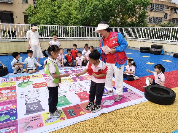 活动伊始,志愿者首先向学生们详细阐述了垃圾分类的重要意义、具体的垃圾分类方法以及开展垃圾分类的现状,帮助学生了解日常生活中垃圾分类的相关知识和技巧。紧接着,志愿者介绍了“垃圾分类大富翁”的游戏规则,“请在10秒钟之内回答废电池属于什么垃圾?回答不出或者错误,就重新返回起点。”“废弃篮球是什么垃圾,回答正确前进一格。”随后,在志愿者的带领下,学生两两一组进行“真人大富翁”,通过猜拳比大小移动步数,每到一格需要回答关于垃圾分类的问题。游戏过程中,孩子们兴趣盎然,纷纷表示“垃圾分类大富翁真的太有趣了,这比听课有意思多了,真希望以后可以多多参加这种真人互动体验游戏”。