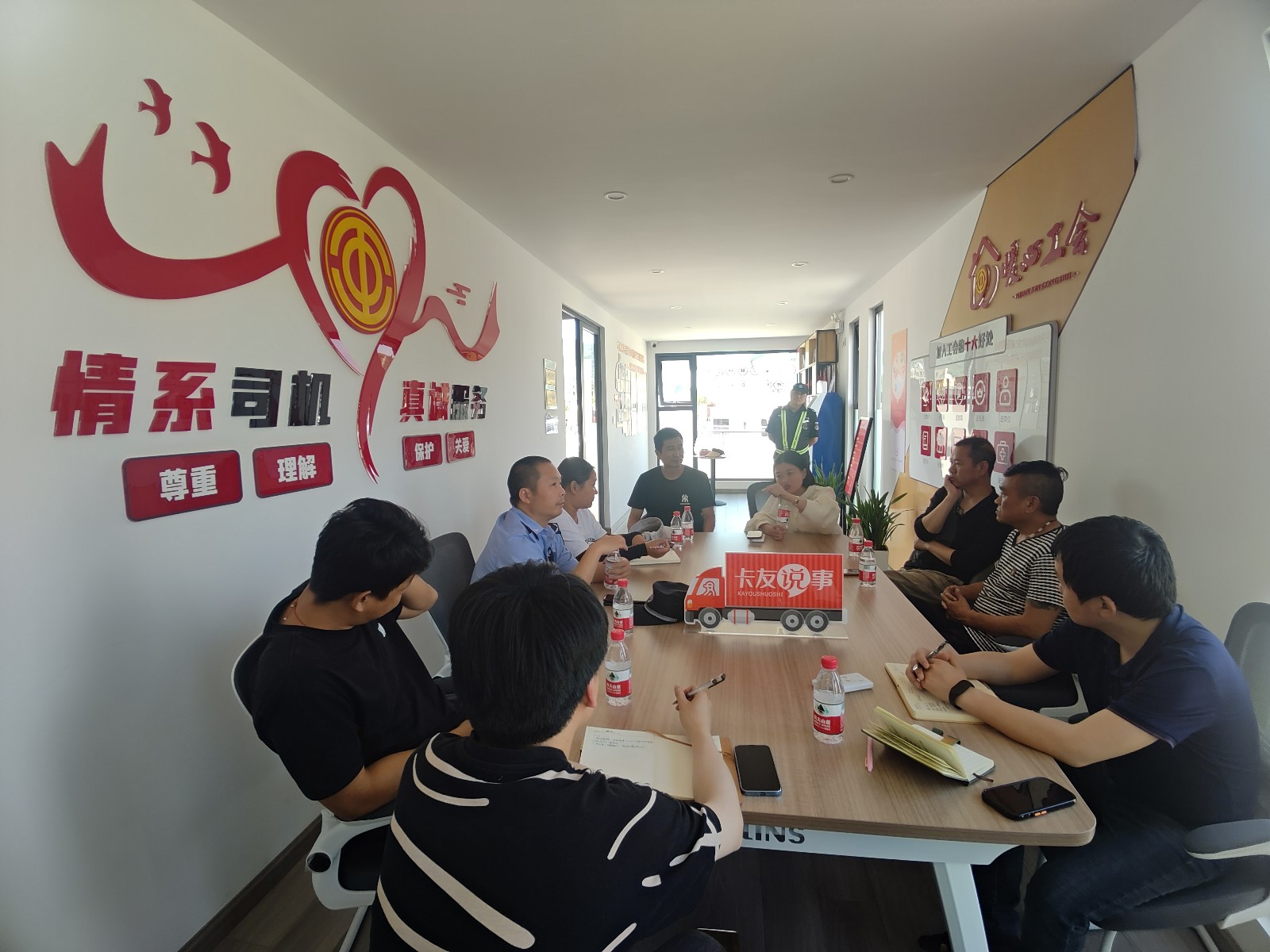 “立马安排!”针对司机师傅提出的每一个问题和要求,社工们逐一记录,并按照逐一解答,并与大家一起商量解决方案。热水器坏了,工作人员立刻致电相关运营单位,将诉求全面细致地传达给他们,要求尽快修理。同时,为了让沟通更加畅通,本次活动特意邀请了梅山街道综合行政执法队、北仑区商贸物流投资集团有限公司相关负责人列席。