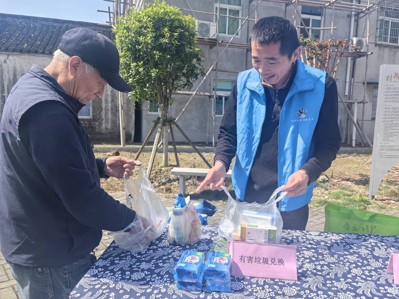 “家中有过期的药品,废电池都可以拿来兑换。”“等下啊,我回家去拿,老早把东西都准备好了,刚好你们今天过来。”有害垃圾兑换点位也是热闹非凡,大家把自己收集的有害垃圾换成了毛巾、肥皂等需要的日用品。现场,志愿者还为大家讲解垃圾分类知识,告诉大家垃圾分类的好处。