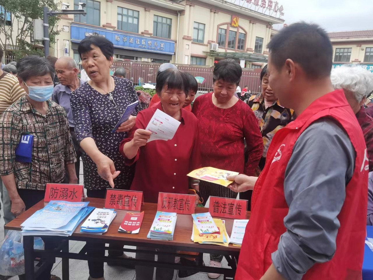 多样宣传,政策入脑入心。现场宣传摊位还包含了消防安全、垃圾分类、普法、入学积分等多个方面。志愿者们通过发放宣传材料、一对一讲解等形式,积极向居民们普及相关政策法规,认真细致地为他们答疑解惑。