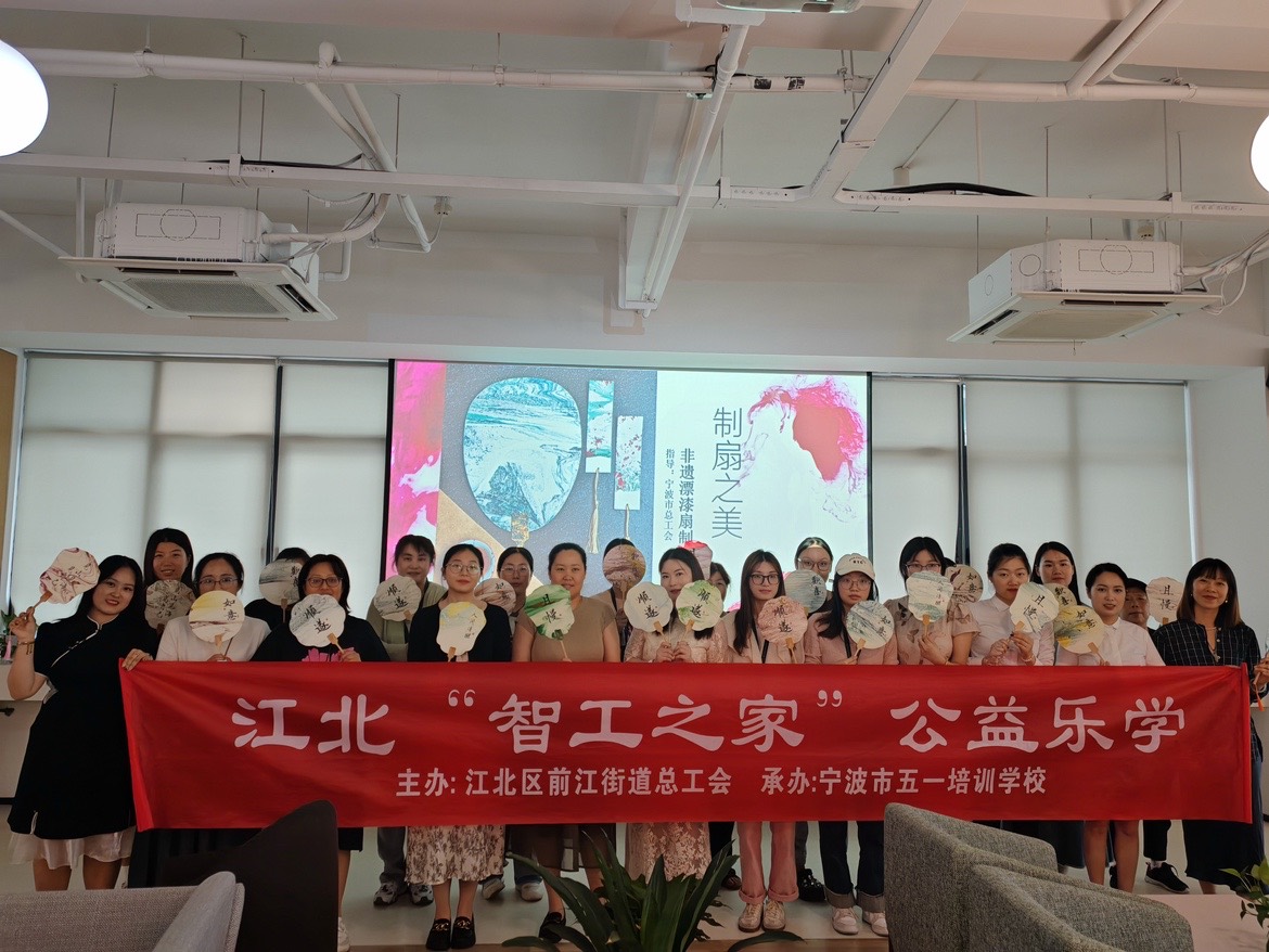 65日,利用午休,前江街道总工会在前洋26创业园举办了一场智工之家公益乐学,体验了非遗漆扇制作。