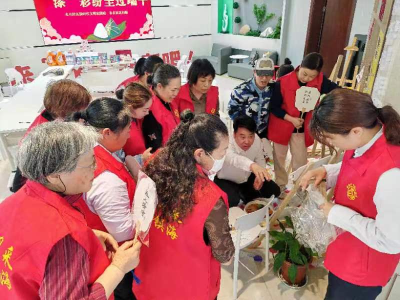 随后,在志愿者及社区网格长们的指导下,妇女们开始动手制作漆扇。她们挑选自己喜欢的漆料,泼点在水面上,通过手法技巧,在扇面上绘制出精美的花纹。虽然初次尝试,但大家都非常认真,一丝不苟地完成每一个步骤。经过一番努力,一把把精美的漆扇在他们的手中诞生,成为端午节期间独特的文化礼物。同时也开展了端午知识竞赛。