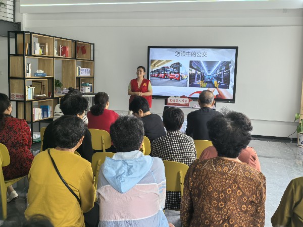随后,贺老师以“安全出行”为主题,结合真实案例,通过2023年公交安全行车数据展示、视频《北仑区交通事故警示录》播放等方式,向大家详细讲述了闯红灯、逆向行驶、随意变道、违法载人、内轮差等交通违法行为的危害性,并强调了驾驶电瓶车佩戴头盔的重要性。视频中,一起起触目惊心的交通事故让在场的每一个人都深感震撼。贺老师还指出很多事故都是因为驾驶员或行人的疏忽大意造成的呼吁个人都应该时刻保持警惕,遵守交通规则,遇到危险情况时,要冷静应对,及时采取措施保护自己和他人的安全。“现在乘坐公交出行不仅环保也十分方便,我们老年人还有优惠政策,真心是不错!”家住海峰佳苑的李阿姨一边翻看着专为老人制作的公交出行手册,一边高兴地说道。