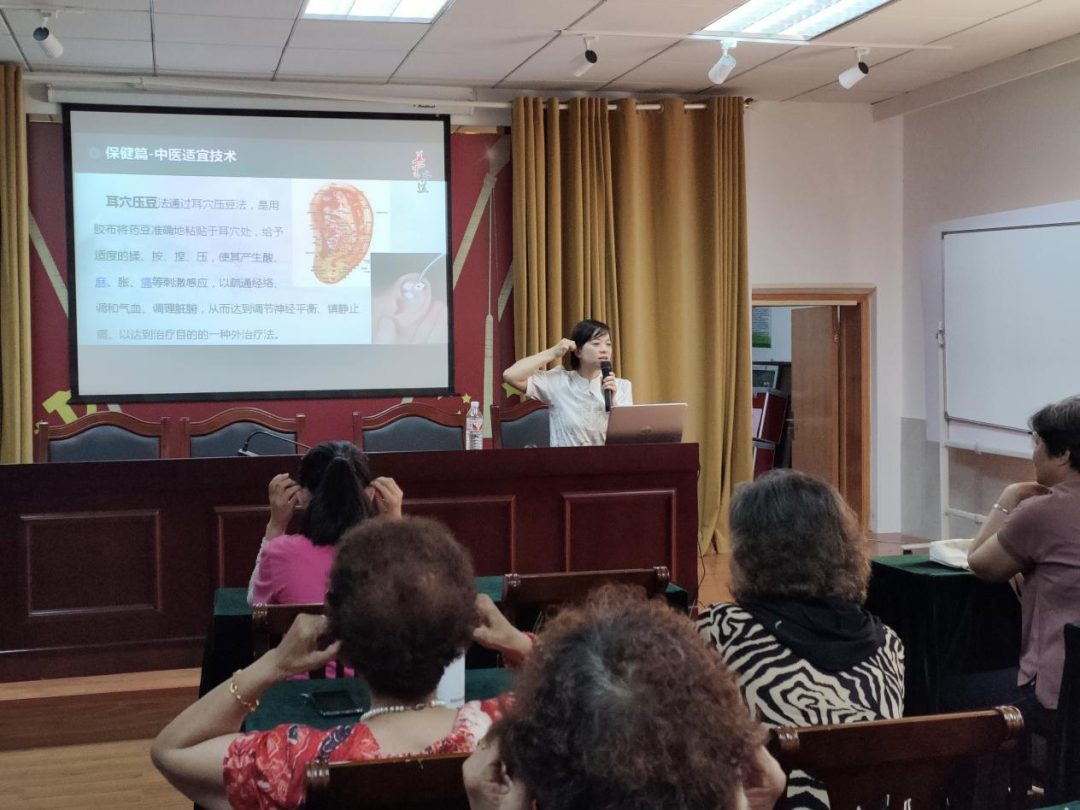 中医院潘医生深入浅出地讲解了夏季的气候特点及其对人体的影响,并给大家讲解和示范不同部位的学位按摩养生手法和技巧。潘医生指出,夏季气候炎热,人体阳气旺盛,容易导致心火过旺、脾胃功能减弱等问题,因此,夏季养生应注重养心、健脾、清热解暑。