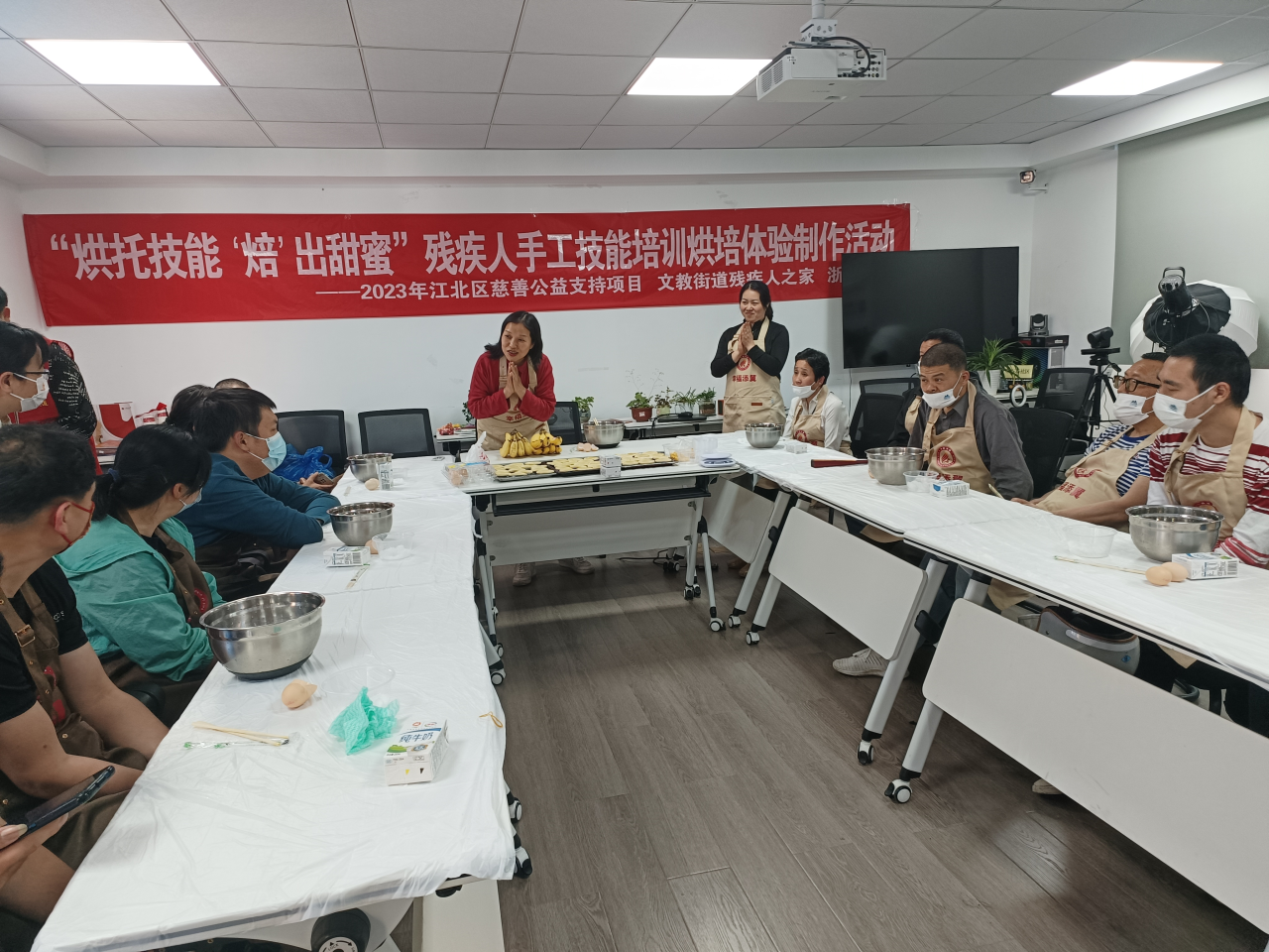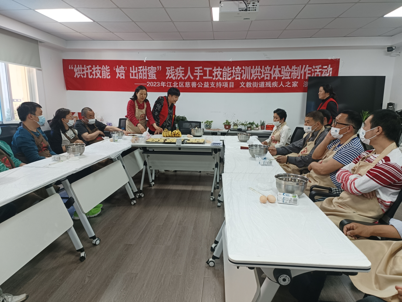 为丰富社区残疾人的精神文化生活,双东坊社区在文教残疾人之家举办了一场“烘托技能, ‘焙’出甜蜜”的烘培技能培训活动。