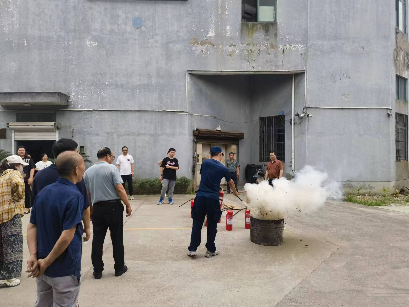 讲座后,大家来到半路汪工业厂区空地上,开展灭火器使用演练。教官讲解了干粉灭火器的使用原理和注意事项,手把手传授灭火器的使用规范。在教官的指导下,网格长、企业员工踊跃参与,依次上前提起灭火器进行实操演练,进一步巩固消防安全知识。