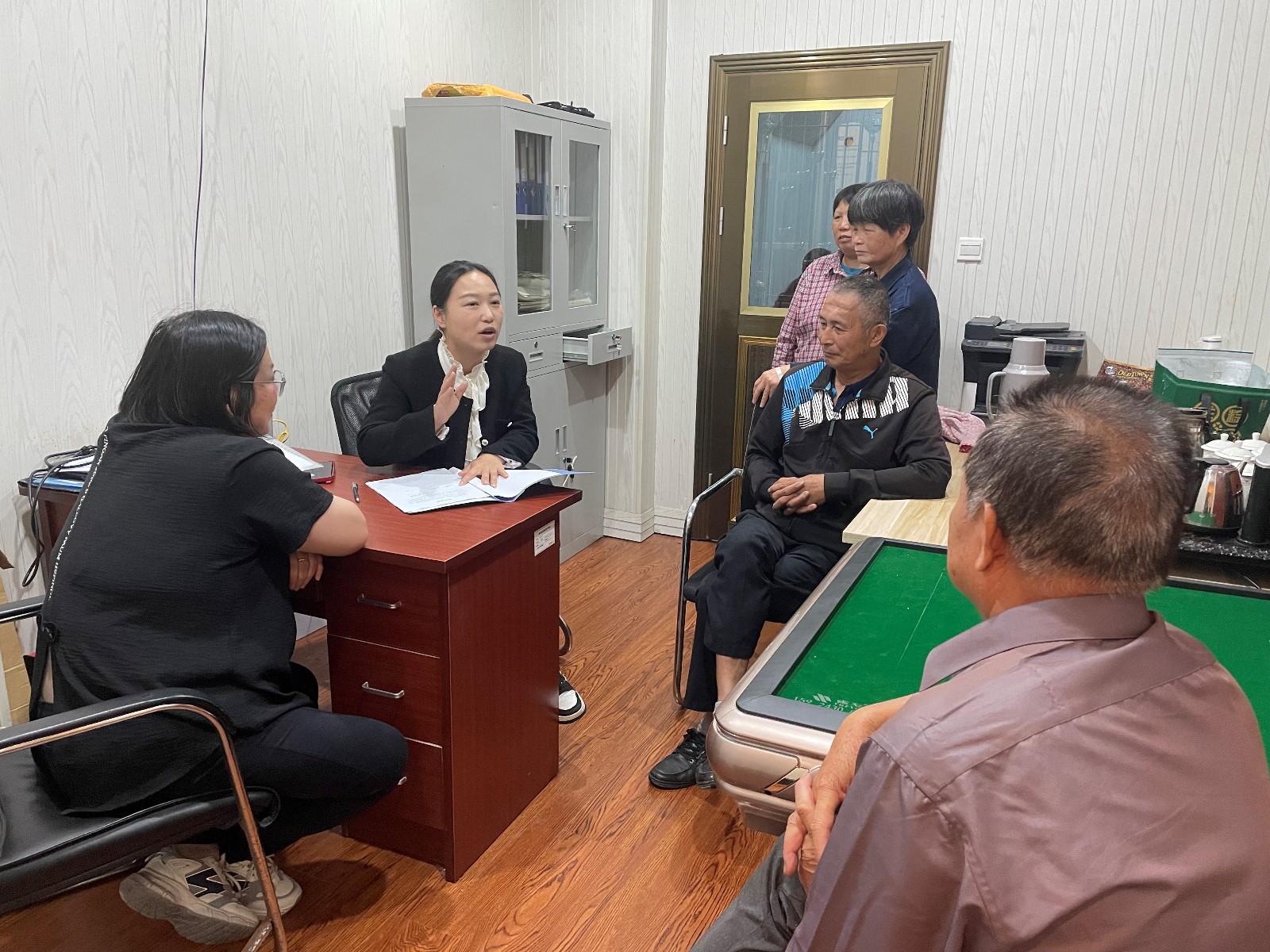 网格员通过一格两群了解到居民、新物业、业委会之间存在矛盾纠纷,因为矛盾没有化解,物业和业委会的工作难以开展,网格员了解到这一情况之后,主动联系矛盾纠纷主体,耐心倾听矛盾缘由,对发现的问题做好记录。为尽快帮助居民化解矛盾,青墩社区党支部书记赵丽多次邀请物业公司代表、业委会成员与居民到社区会议室进行矛盾调解。起初,矛盾双方各执己见,互不相让,无法达成一致意见。社区党支部书记认真梳理、研究了双方的矛盾纠纷点,与居民进行多次电话沟通,并入户走访协调。经过社区工作人员的耐心劝解,双方终于达成共识,并在社区工作人员的见证下,签订了和解协议,成功将这一矛盾化解在居民的家门口。