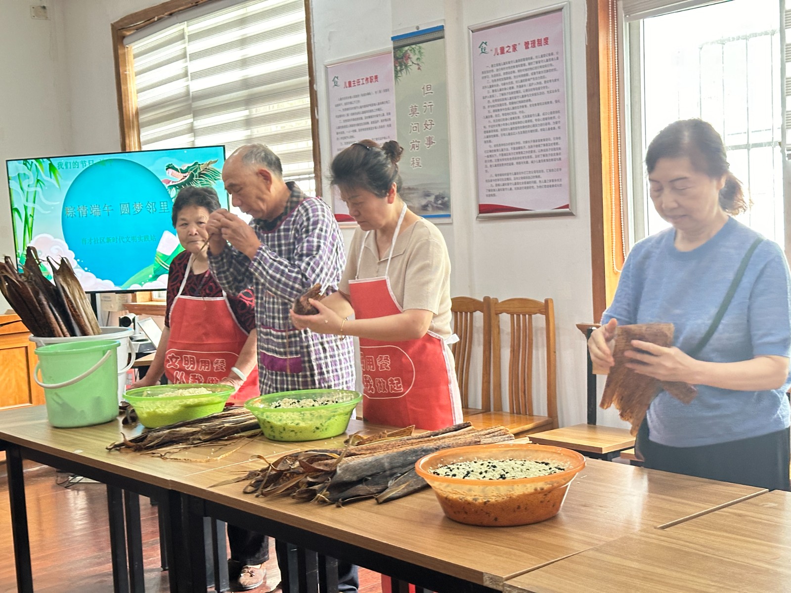 6月4日上午,育才社区网格员、辖区居民、志愿者在社区新时代文明实践站开展“我们的节日粽情端午 圆梦邻里”主题活动。活动现场,大家围在一起,纷纷露出看家本领,捋粽叶、做漏斗状、填糯米、压紧抓实、封口、扎捆,巧手翻飞,不一会儿功夫,三角形、牛角形、等一只只各式各样的粽子瞬间成型。大家聚在一起交流并分享包粽子技巧,分享劳动成果,浓浓的粽香味四处弥漫。包完粽子后,志愿者们将艾草香料装进锦袋制成一个个精致的香包,缕缕艾香味弥漫在整个社区,给端午佳节带来了浓浓的艾草情。