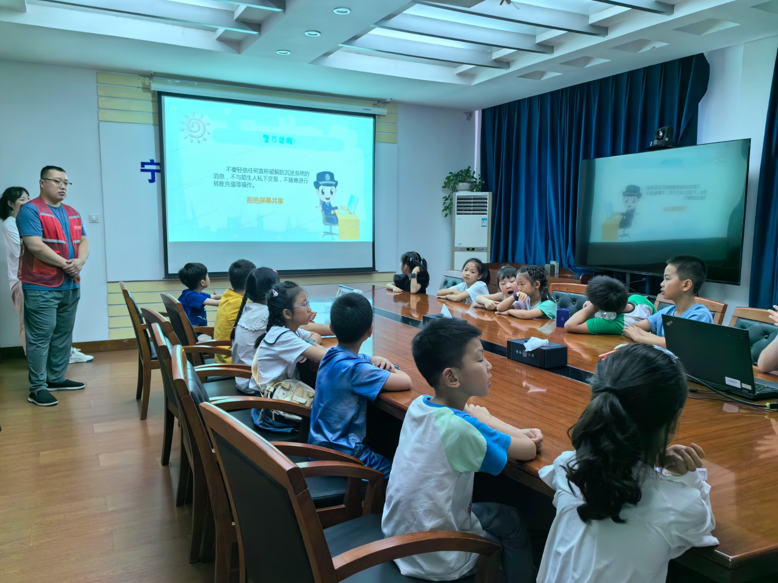 一到派出所,孩子们就整齐地排好了队伍,在贵驷派出所何贤华副所长的热情迎接下,参观了警车内的各种配置:防爆盾牌、警棍、手铐、救援绳等警用装备一一呈现在眼前,何副所长详细介绍了它们的用途和使用方法,并让孩子们亲手触摸感受,满足了他们的好奇心。在监控室,巨大的屏幕上显示着辖区内各个角落的实时高清画面,孩子们瞪大了眼睛,找寻着熟悉的角落,在惊叹于科技神奇的同时,何副所长趁机教育孩子们要遵守相关的规定,不要闯红灯、随地乱扔垃圾等,还讲解了监控系统如何保障大家的安全。在办案区,通过现场参观辨认室、审讯室等场所,让孩子们了解到警察叔叔执法办案的严肃和公正。为了让孩子们更好地了解反诈知识,何副所长还安排了一场生动有趣的反诈骗讲座。通过案例分析、互动问答等环节,孩子们掌握了许多实用的知识。社区工作人员也为孩子们发放了垃圾分类宣传折页,让孩子们在家中协助家长正确进行垃圾分类。
