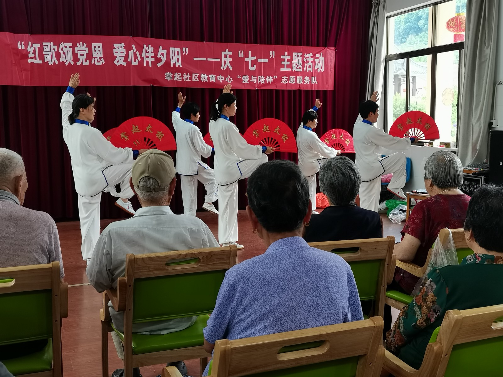 629日,掌起社区教育中心“爱与陪伴”志愿服务队走进掌起镇中心敬老院与老人共同庆祝建党103周年华诞,本次庆祝活动主题为“红歌颂党恩 爱心伴夕阳”。