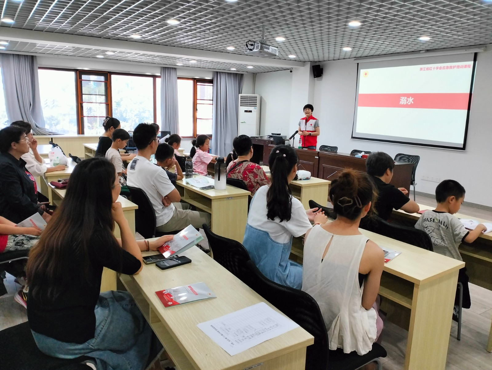 炎炎酷暑,游泳、玩水受到了青少年热烈欢迎,但频频发生的溺水事故也让不少家庭敲响了生命安全的警钟,预防溺水安全教育迫在眉睫。为提高辖区内青少年防溺水意识,日前,天悦社区携手江北区红十字会组织了防溺水安全知识亲子课堂,来自网格里的15组亲子家庭参与了此次课程。