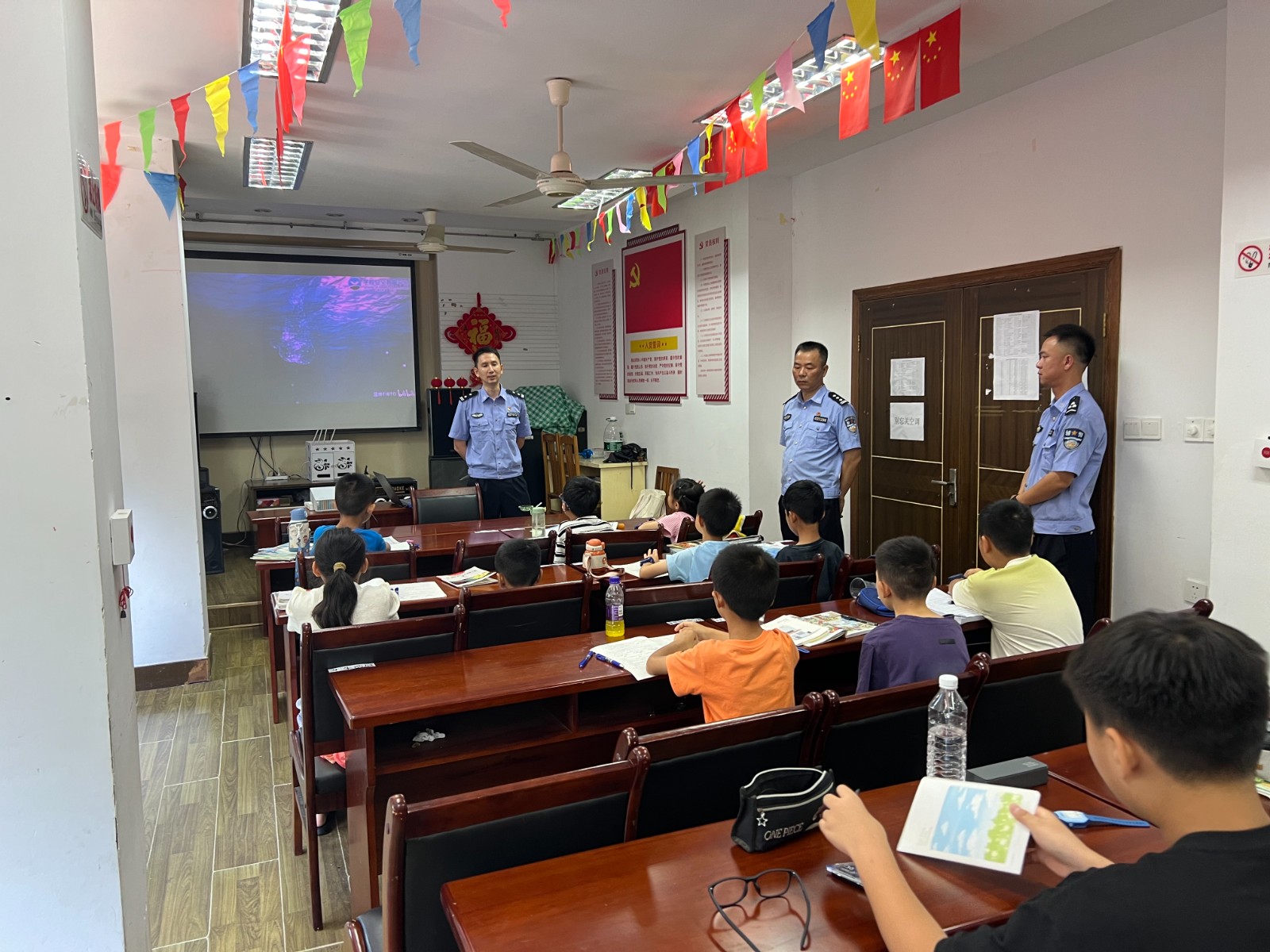 最后,辖区民警陈志路开展了暑期防溺水知识宣传,对于暑期可能会遇到的危险,陈警官让孩子们积极思考,孩子们争相举手回答,提出了交通、煤气、触电等危险。本次课程以溺水为主要切入点,陈警官用生动有趣的语言讲解了如何预防溺水以及溺水的危险性。对于防诈骗课程,陈警官则通过一个个小故事,讲述了刷单诈骗、网络购物诈骗等常见诈骗手段,让孩子们提醒自己身边的人,“保护自己的手机!保护自己的个人信息!保护自己的验证码!”