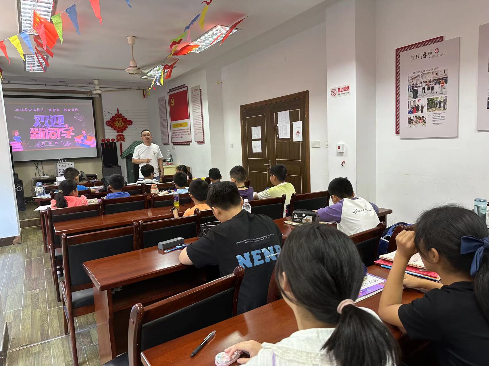 俞崇良致开学辞,介绍了本次假日学校的指导思想、目的要求、具体内容、活动形式和课程安排,嘱咐小学员们注意安全及上下课秩序等,向大家宣读了课堂纪律、学生接送签到制度和其他注意事项。