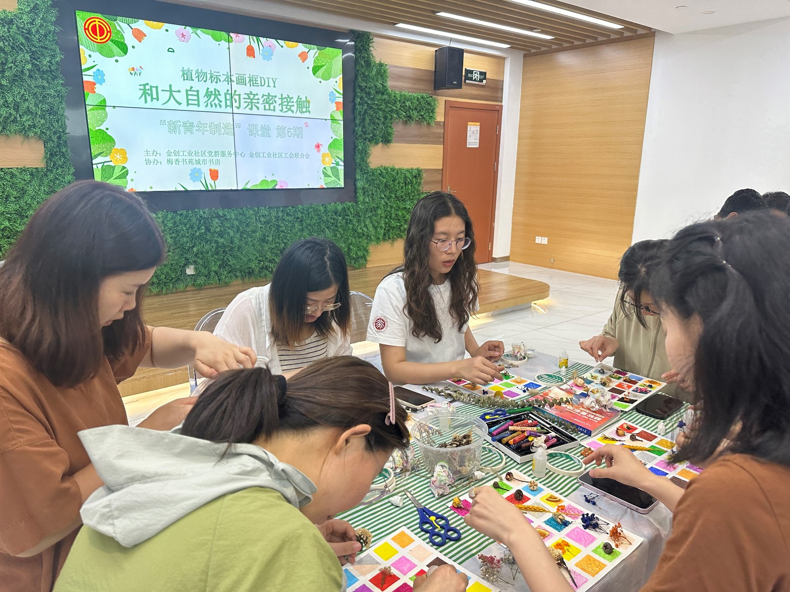 每一片树叶都是大自然的馈赠,每一份标本都是一次探索自然奥秘的旅程。7月5日中午,梅山成校教学点金创工业社区网格持续开展“新青年制造”课堂--“和大自然亲密接触”植物标本画框手工制作课程,来自宁波(中国)供应链创新学院、宁波大学梅山校区等辖区企事业单位的40余名辖区职工纷纷踊跃报名参加。