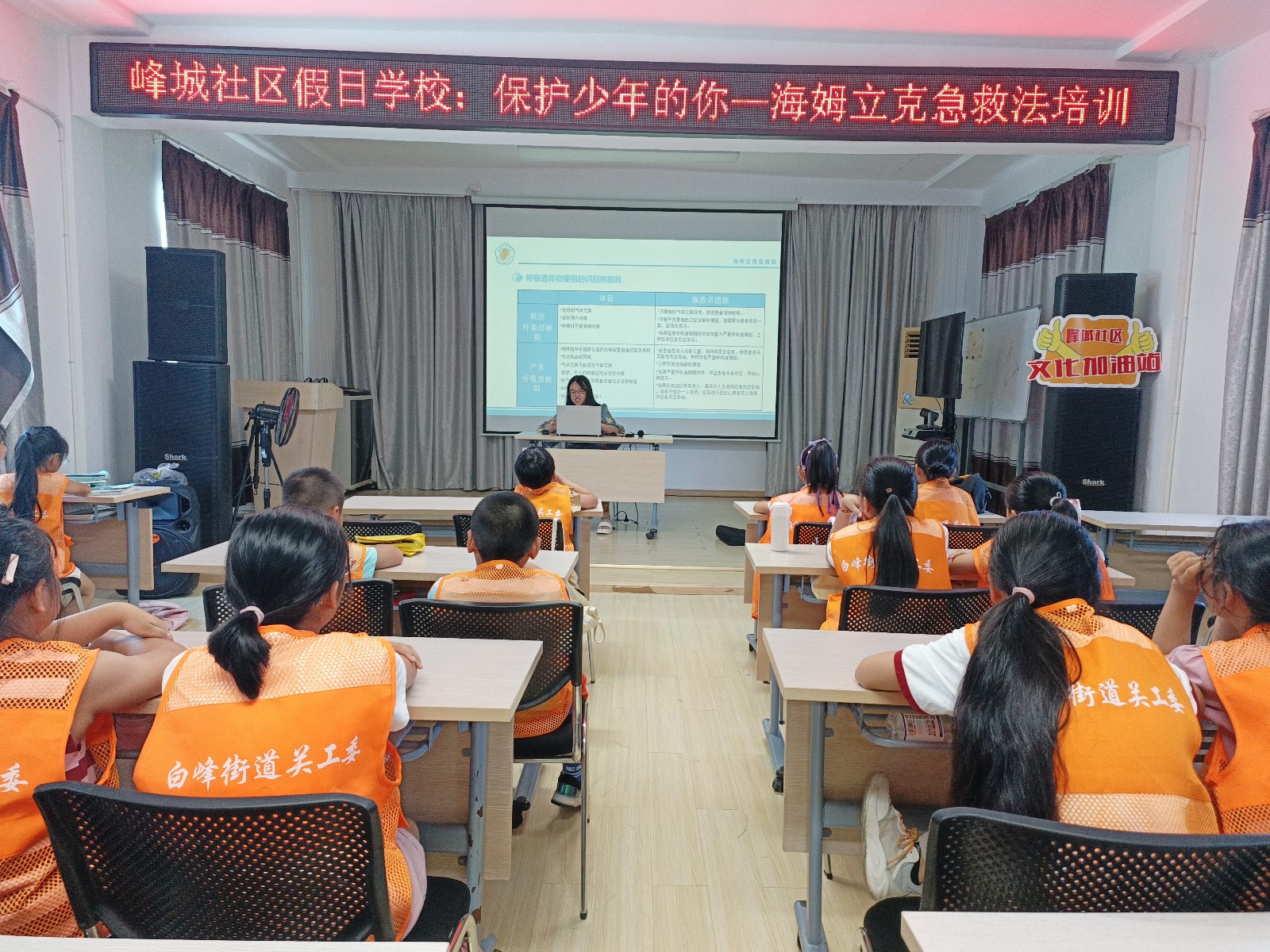为提高辖区青少年急救知识与技能,减少意外伤害发生。7月8日上午,峰城社区党群服务中心假日学校邀请白峰街道社区卫生服务中心医生,开展青少年暑期安全知识课堂活动,为青少年讲解以海姆立克法为主题的急救知识培训,辖区30余名青少年参加。
