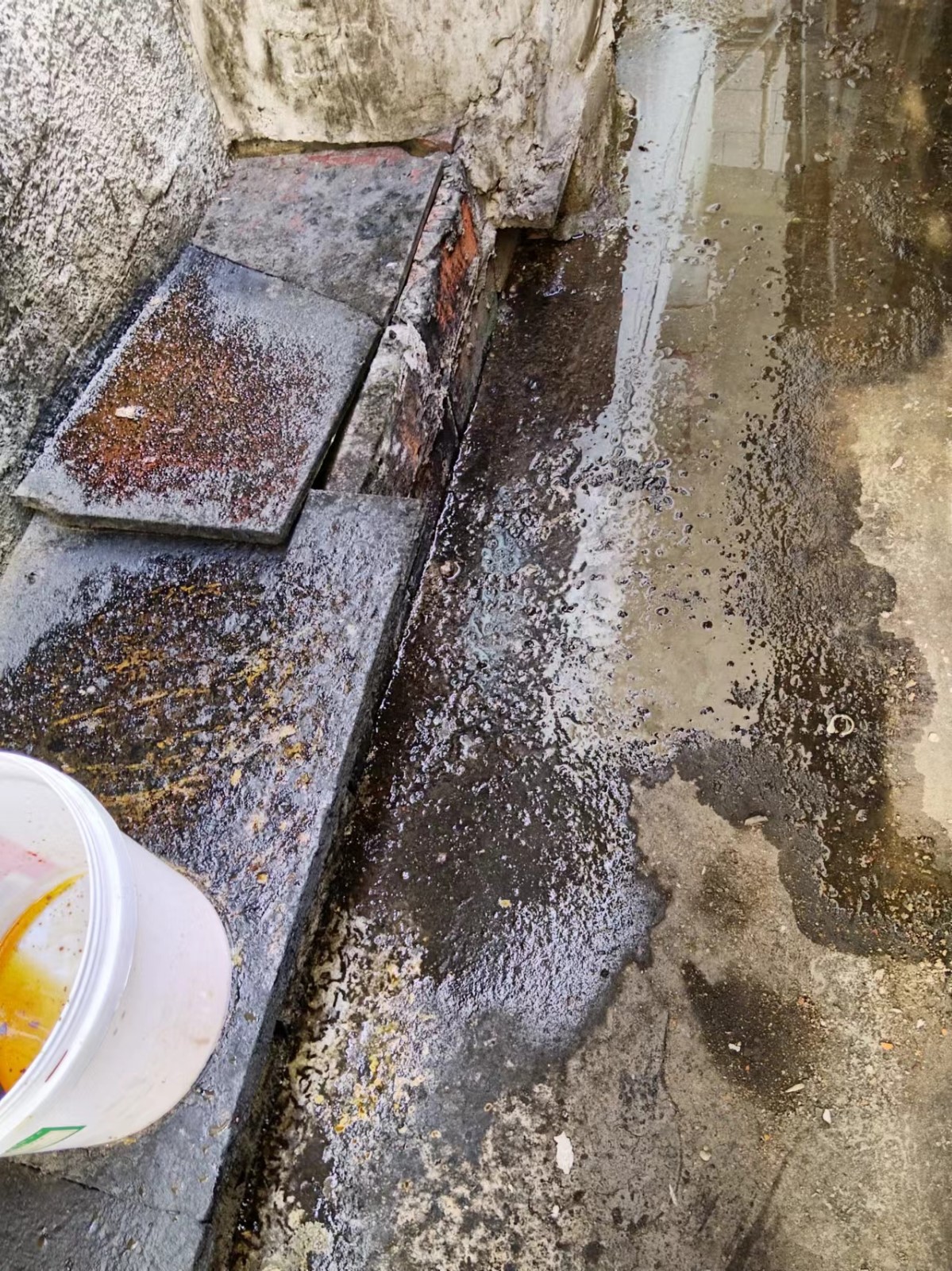 社区网格员看到消息后迅速在群里进行了回应,并联系了街道综合行政执法中队的执法人员及时赶到了现场。经了解,原来是教师楼旁新开的餐饮店安装油烟机时设计不到位,在室外排油管道上开了一道长长的排油口,炒菜时产生的油污直接通过这个口子里排出,店主在底下放了一个小塑料桶用来接油污,由于出油口大,接油桶小,因此大部分油污都滴落在墙面及地上,导致油污满地。查清事情原委后,执法人员责令店主限期整改到位,做到油污不跑冒漏滴,保持周边环境整洁。整改到期后网格员到现场进行了回头看,油烟管道已整改完毕。