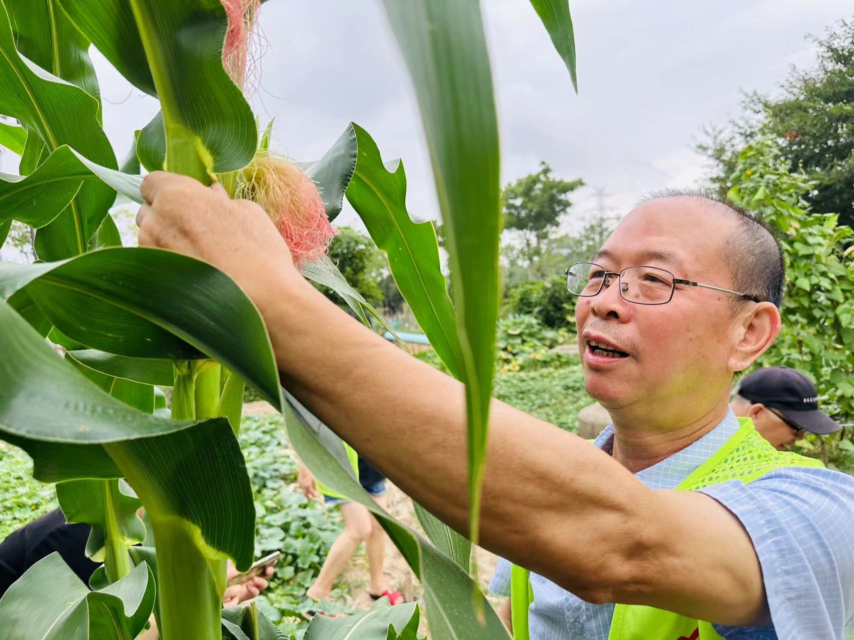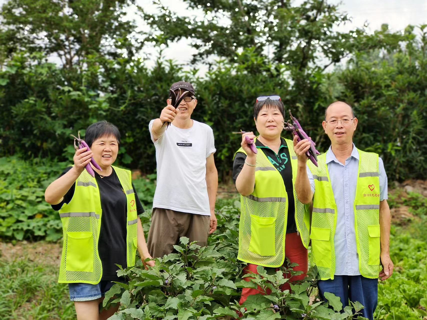 石塘下社区“幺叁伍菜园”位于王家河路与雄镇路交界处。“此前,这块区域经常出现建筑垃圾偷倒现象,既影响美观,又给环境卫生管理带来许多不便。我们发现这个问题后,就与古塘丽景一二期自治站进行了商议,决定共同管理运作该区域。”该社区党总支书记罗明良说道。今年5月中旬,自治站组织志愿者对此块区域进行清理并复耕复种。大家在菜园里种下了玉米、红薯、茄子、生菜、豆角等蔬菜,并定期浇水施肥、除草、疏叶。