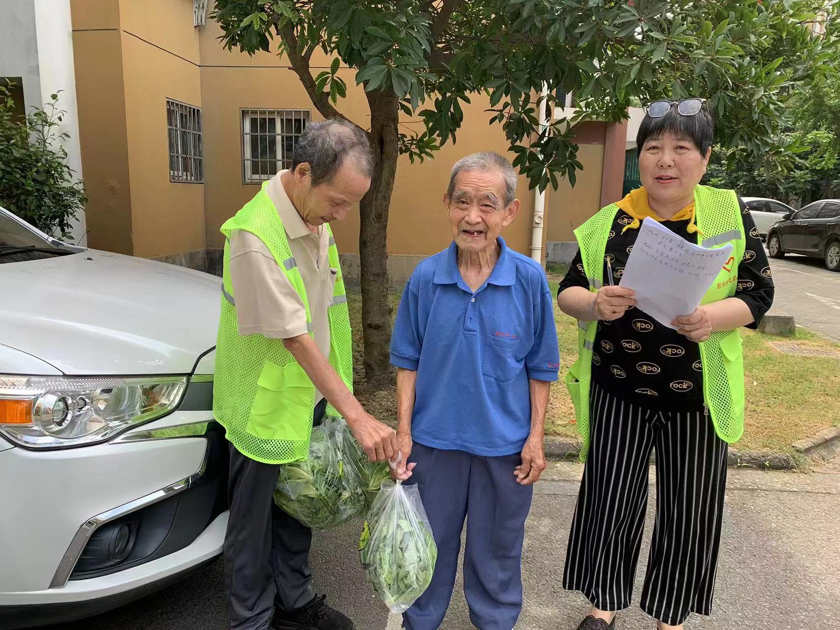 “陈阿姨,早上菜园子里摘下来的带滑灵蔬菜,给您拿一些尝尝。”7月12日,古塘丽景一二期自治站志愿者们将菜园里采摘的蔬菜送到网格90岁以上老人家中。