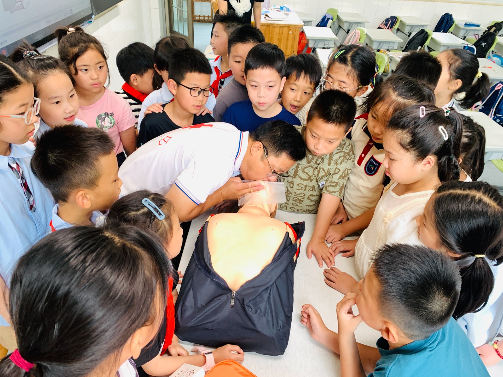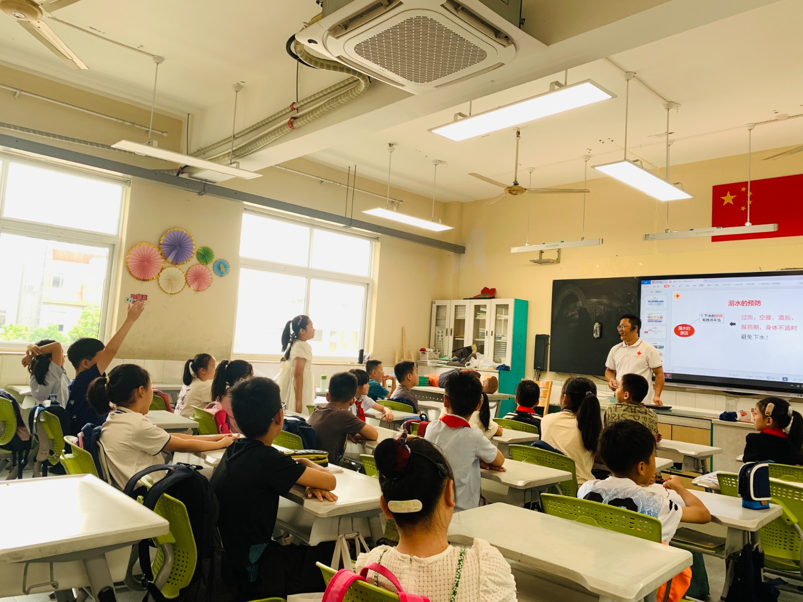 溺水问题关乎每一个家庭,不容小觑,随后,邵老师通过情境模拟的方式,邀请同学们上台互动,让孩子们明白了溺水事件的严重危害和防溺水的重要性。最后,邵老师着重讲了溺水的应急救助知识,并在模拟人身上演示具体救护方法。“每次我想去游泳,都让爸爸带着我!”“我们不能随便去河里游泳,有救身圈也不可以!”孩子们各个认真聆听,积极互动,气氛热烈。