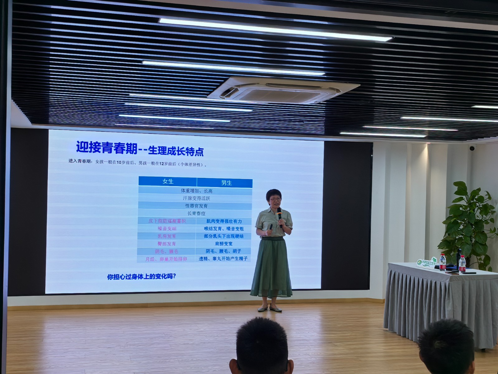 讲座伊始,谢老师通过一系列互动调动同学们参与活动的热情。接着她以通俗易懂的语言,向同学们阐述了青春期的概念、生理发育和心理发展表现。她指出,青春期是一个人从儿童向成人过渡的重要时期,这个时期身体会发生许多变化,包括身高、体重的增加,性器官的发育等。同时,心理上也会经历一系列的变化,如情绪波动、自我意识增强等。青春期是一个美好的时期,同时也伴随着一些挑战和风险。因此,同学们需要学会正确看待自己的身体变化,了解并尊重自己的生理和心理需求,学会保护自己。