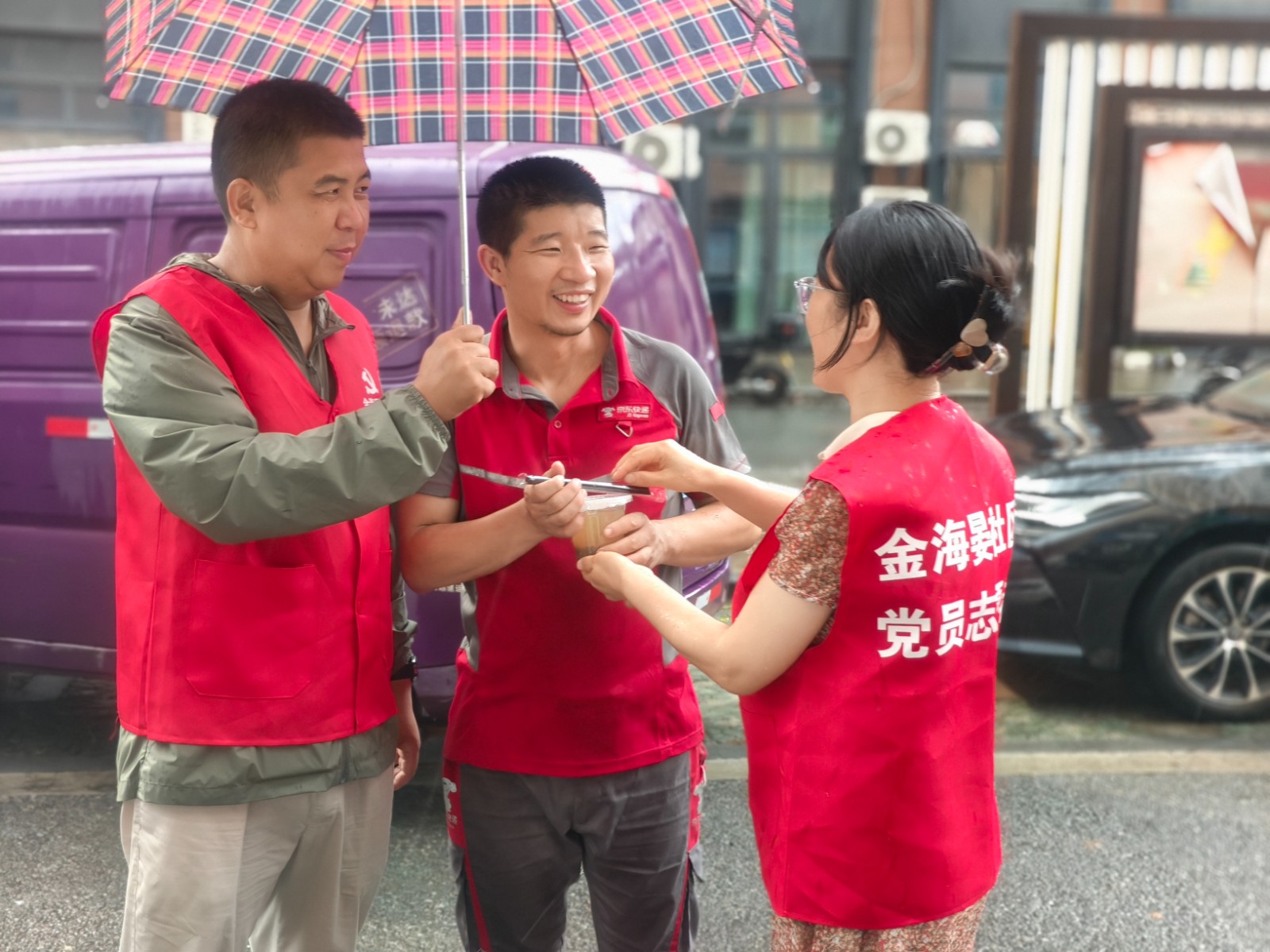 近日,金海晏社区在辖区开展了“以‘心’暖‘新’情系新业态”送清凉活动,为在炎炎夏日中辛勤工作的货车司机们、快递员们送上了一份关怀与清凉。社区工作人员、党员、流动党员深入走访辖区的卡车司机、快递员等,为他们送去精心熬制的冰镇绿豆沙、柠檬茶等降暑食品,并向他们表达了关切和问候。同时,工作人员还与货车司机们进行了交流,了解他们的工作和生活情况,听取他们的意见和建议。