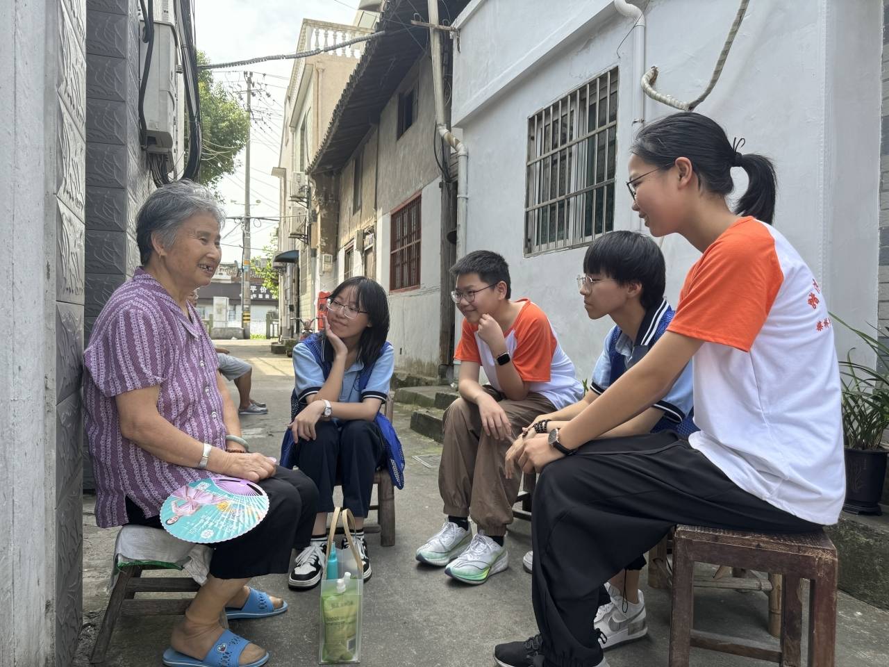 社区甬爱E家工作人员为老人们送上了精心准备的慰问品,并耐心地为老人们讲解夏日防暑降温的小知识,提醒他们注意饮食和休息,保持身体健康。学生志愿者们则亲切地与老人们交流,询问他们的身体状况和生活情况,倾听他们的故事和心声。一句句贴心的问候,如同一股股清泉,滋润着老人们的心田。