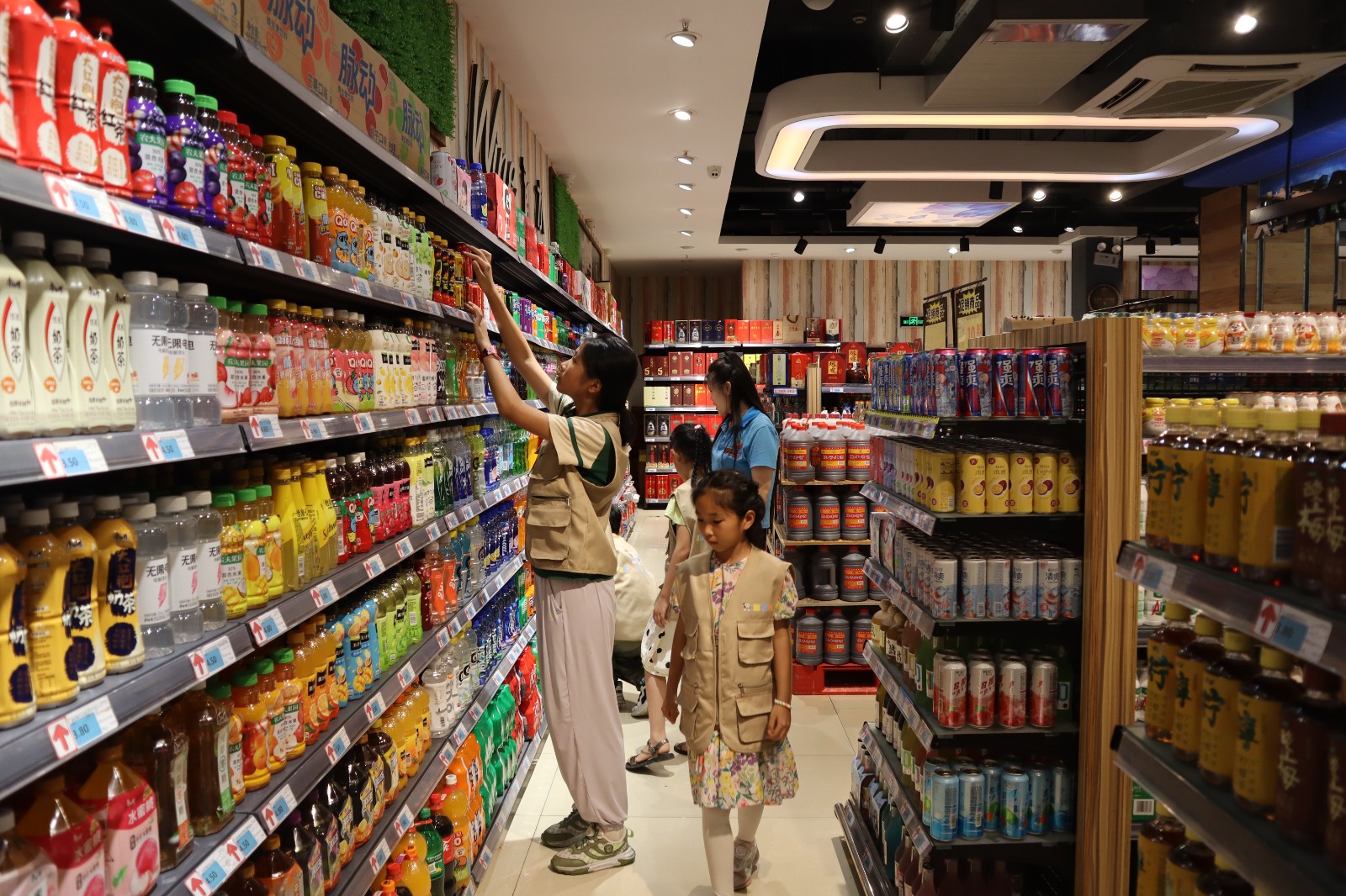 当天下午2点,小朋友们准时来到了超市门口集合,进入超市后,小朋友们兴致勃勃地在超市店长的组织下,有序地参观超市各个区域,了解了超市物品的种类、物品摆放的规律和商品的价格。