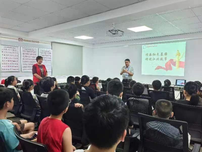为进一步培养社区青少年的爱国情怀, 7月18日上午,双东坊社区邀请胡国民老师为辖区青少年开展主题为《传承红色基因,讲述江北故事》的爱国主义教育宣讲。