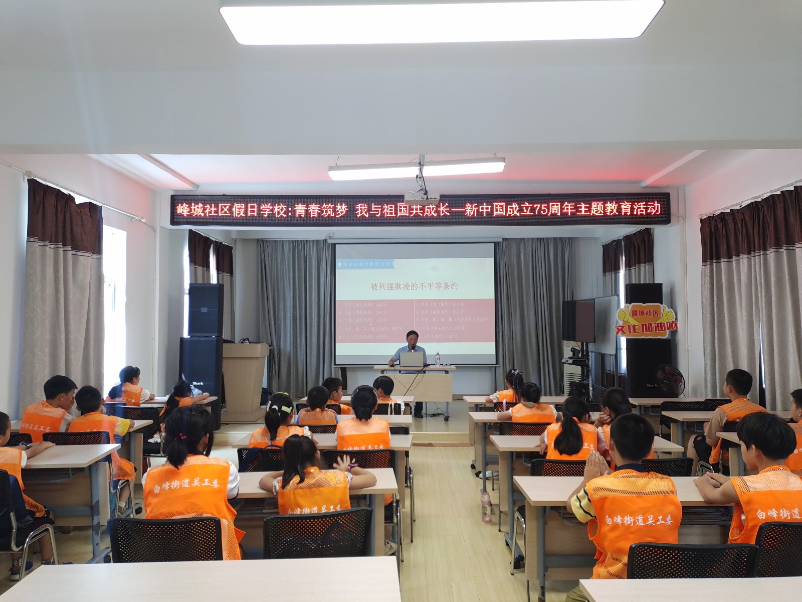 为纪念新中国成立75周年,弘扬爱国主义精神,加强青少年对国家历史的认识,激发青少年的历史责任感和使命感,7月19日上午,峰城社区党群服务中心联合新时代文明实践站邀请白峰街道工委党校副校长沈宏辉开展一堂主题为“青春筑梦 我与祖国共成长”新中国成立75周年主题教育课堂。