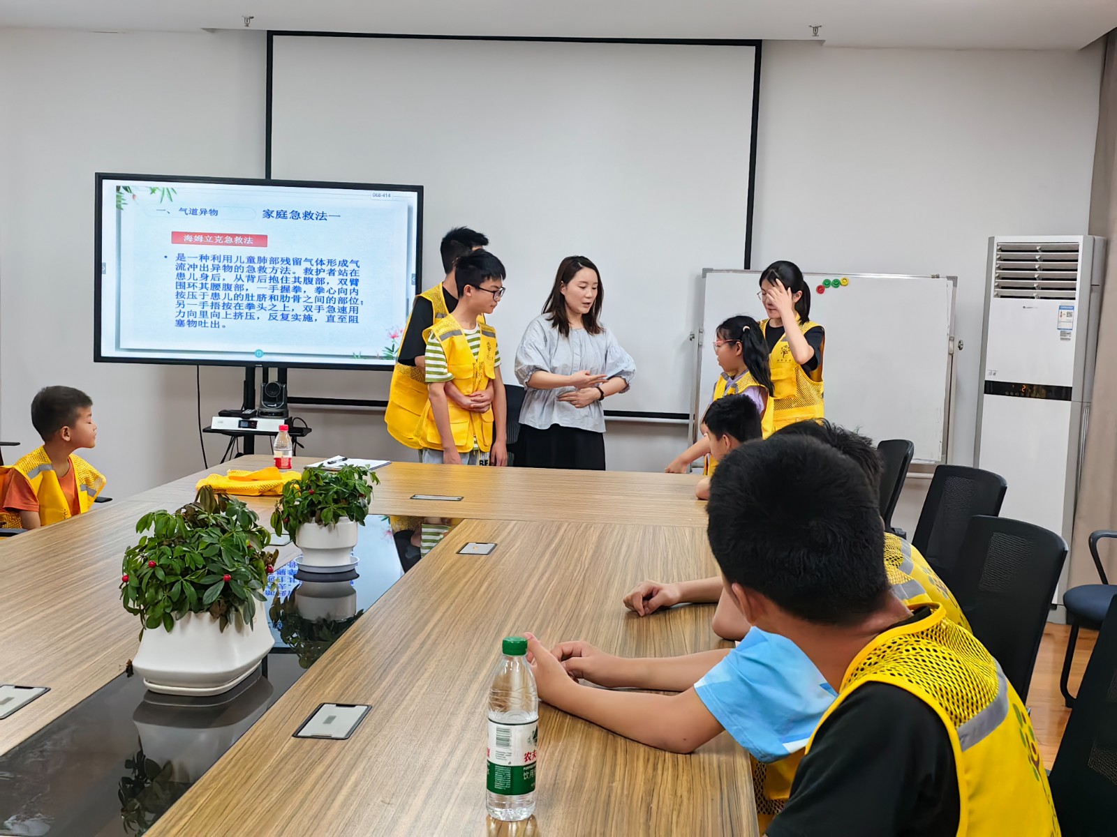海姆立克急救法是一种利用儿童肺部残留气体形成气流冲出异物的急救方法近日,未来盛园社区小树苗假日学校“共享”课堂正在开讲。在“护士妈妈”何求文的带领下,“小树苗”们学习暑期中的安全教育和健康护航知识。
