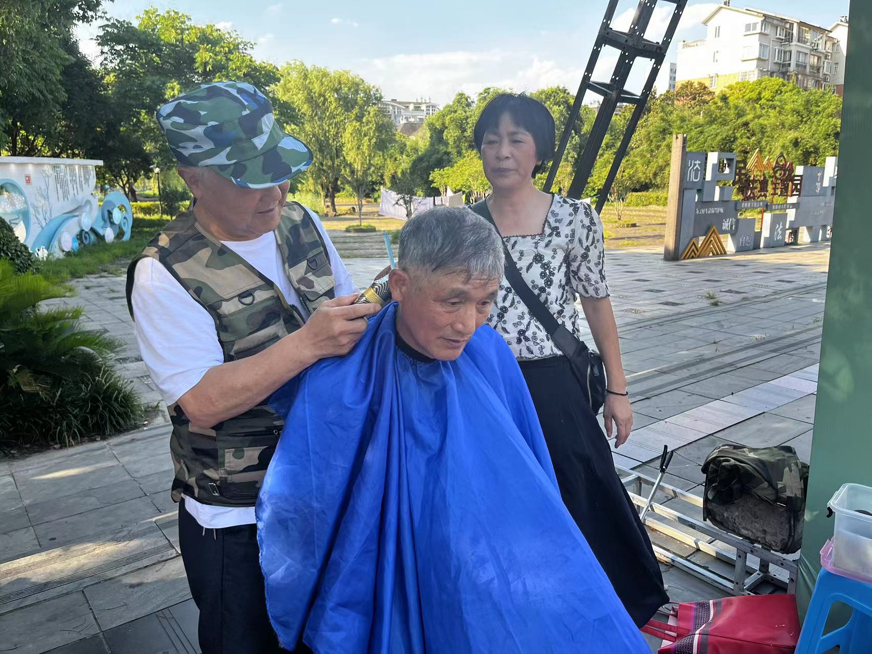 近日,“老兵金剪”队员们在大千公园支起摊位,为周边老人免费理发。细致的服务,精巧的技艺,温暖的家常,让高田王的老人们总是愿意等待穿着“北仑老兵”马甲的老兵志愿者在公园支摊起灶。不用像货郎般吆喝,老兵来免费理发的消息就像长了翅膀的金丝雀,飞进老人们的耳里。老人们结伴而来,排队等候,甚至认准了老兵为自己的理发专员。“山峰态度交关好”,“阿满老师傅了,剃头又快又好”,每每理完一位老人,他们总有说不尽的赞美,引得排队的老人们一阵应和。