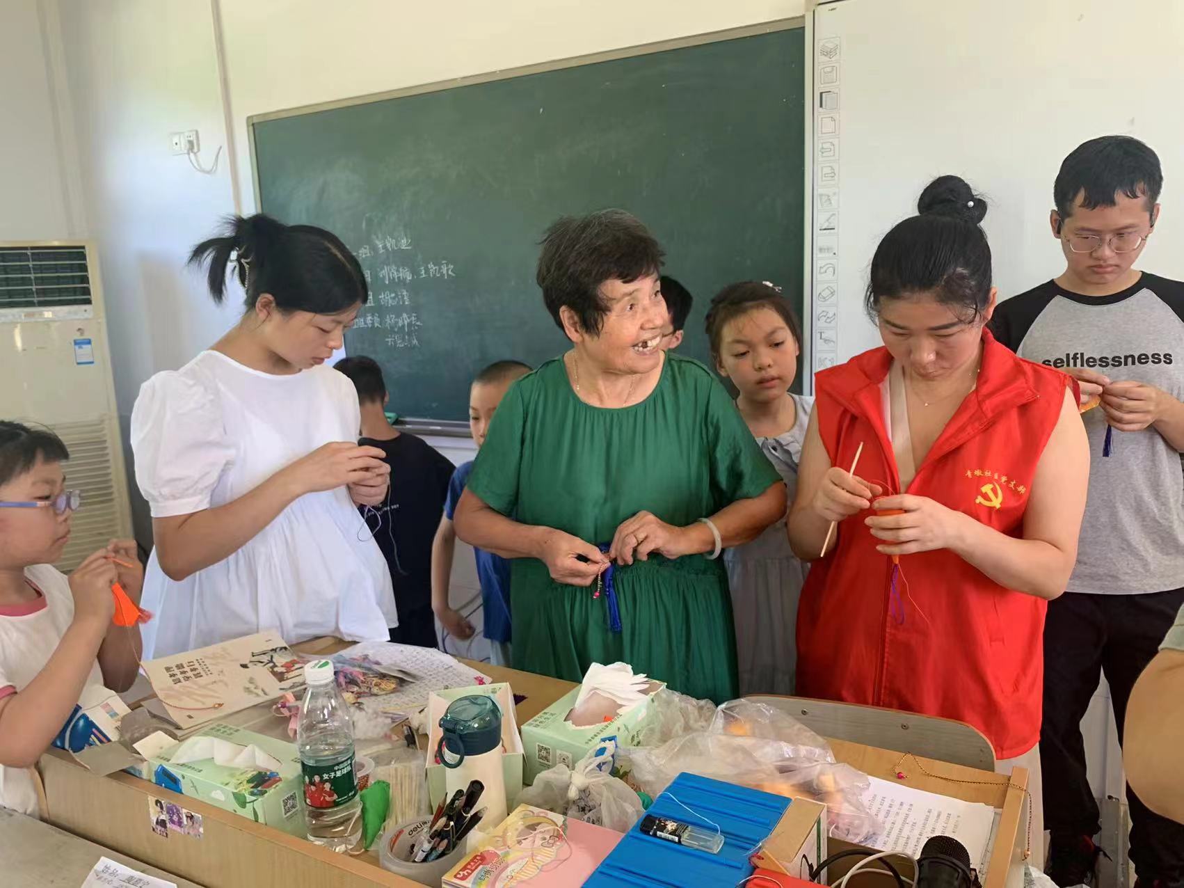 活动现场,五彩斑斓的各种编织材料整齐摆放,空气中弥漫着温馨与期待。五老志愿者冯志娟耐心地向大家展示着编织的基本步骤,从简单的结扣到复杂的图案设计,每一步都讲解得细致入微。小朋友们聚精会神地学习,偶尔遇到难题,便会有旁边的志愿者伸出援手,用他们丰富的生活经验和灵巧的双手,帮助解决难题。