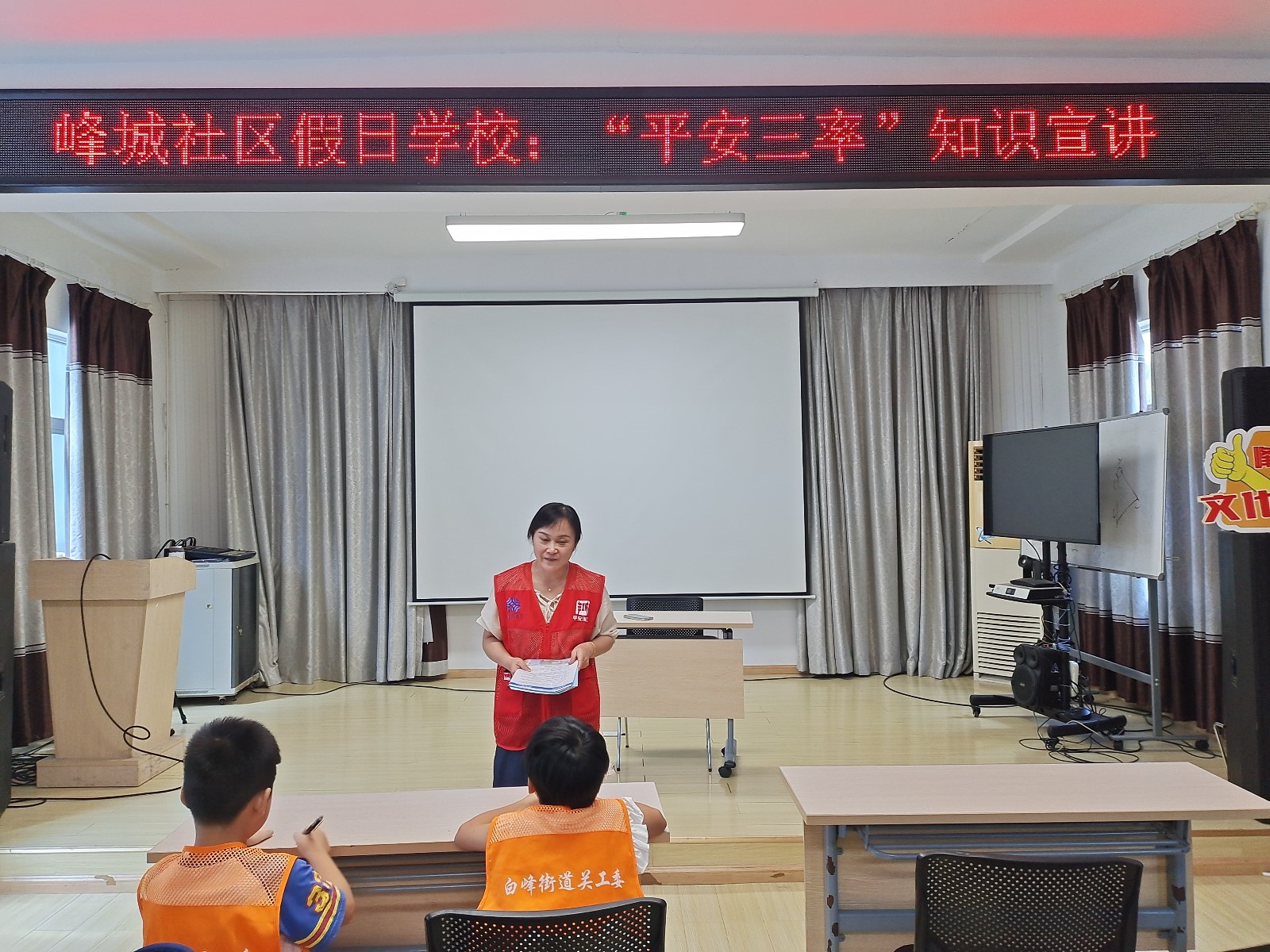 “小朋友们,你们知道什么是平安三率吗?”“我知道,是参与平安建设工作的知晓率、参与率和满意率。”“哇,很厉害啊。”为进一步做好“平安三率”宣传工作,提高辖区青少年安全感、平安建设参与率、电信网络诈骗犯罪防范知识知晓率,将“平安三率”作为社区安全常规的重要工作开展宣传,7月23日上午,峰城社区党群服务中心联合假日学校平台,开展“平安三率”宣传活动。