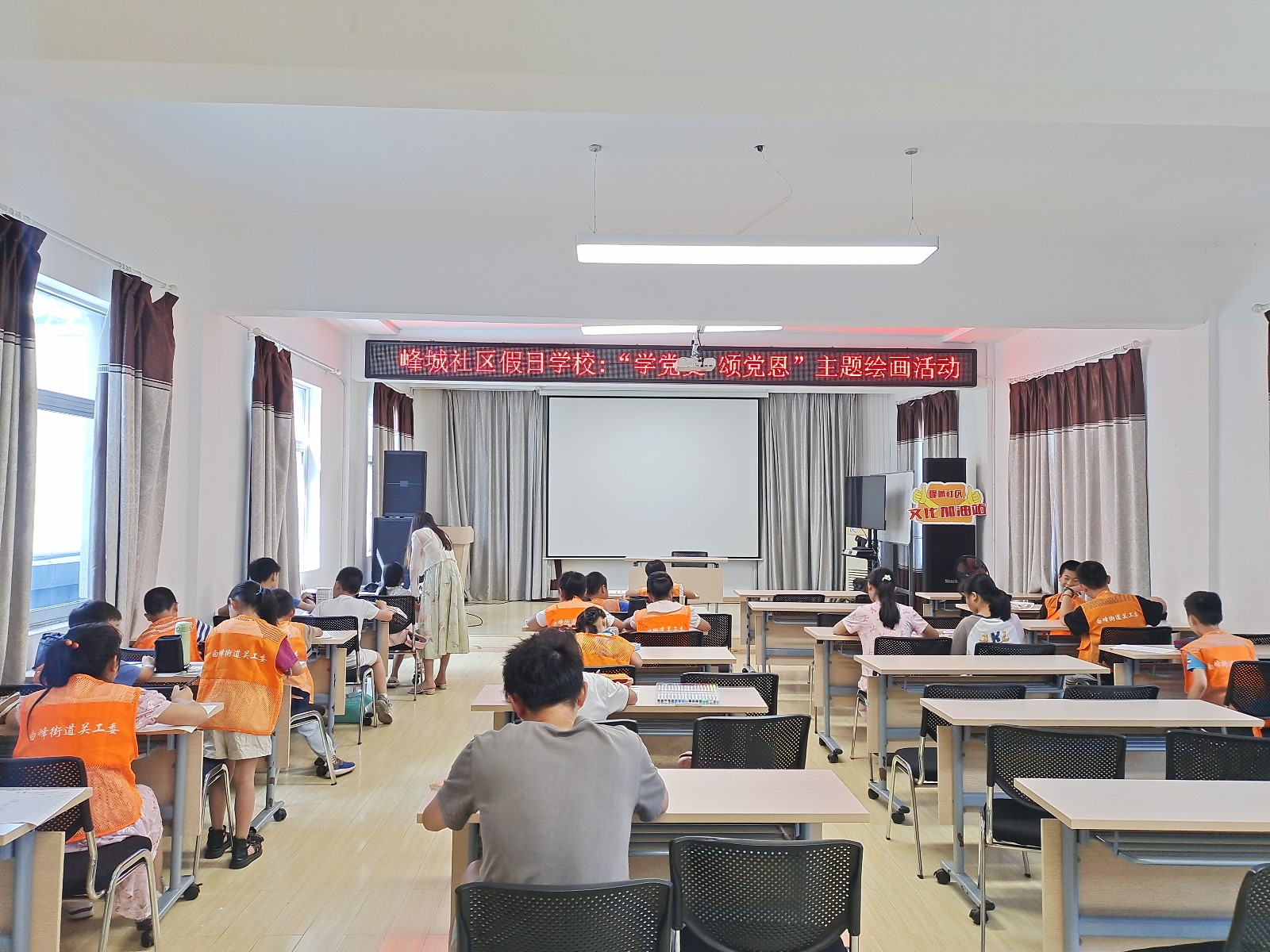 为激发青少年的爱国热情和艺术创作能力,7月23日上午,峰城社区党群服务中心邀请区文化加油站老师,组织开展“学党史 颂党恩”主题绘画活动。