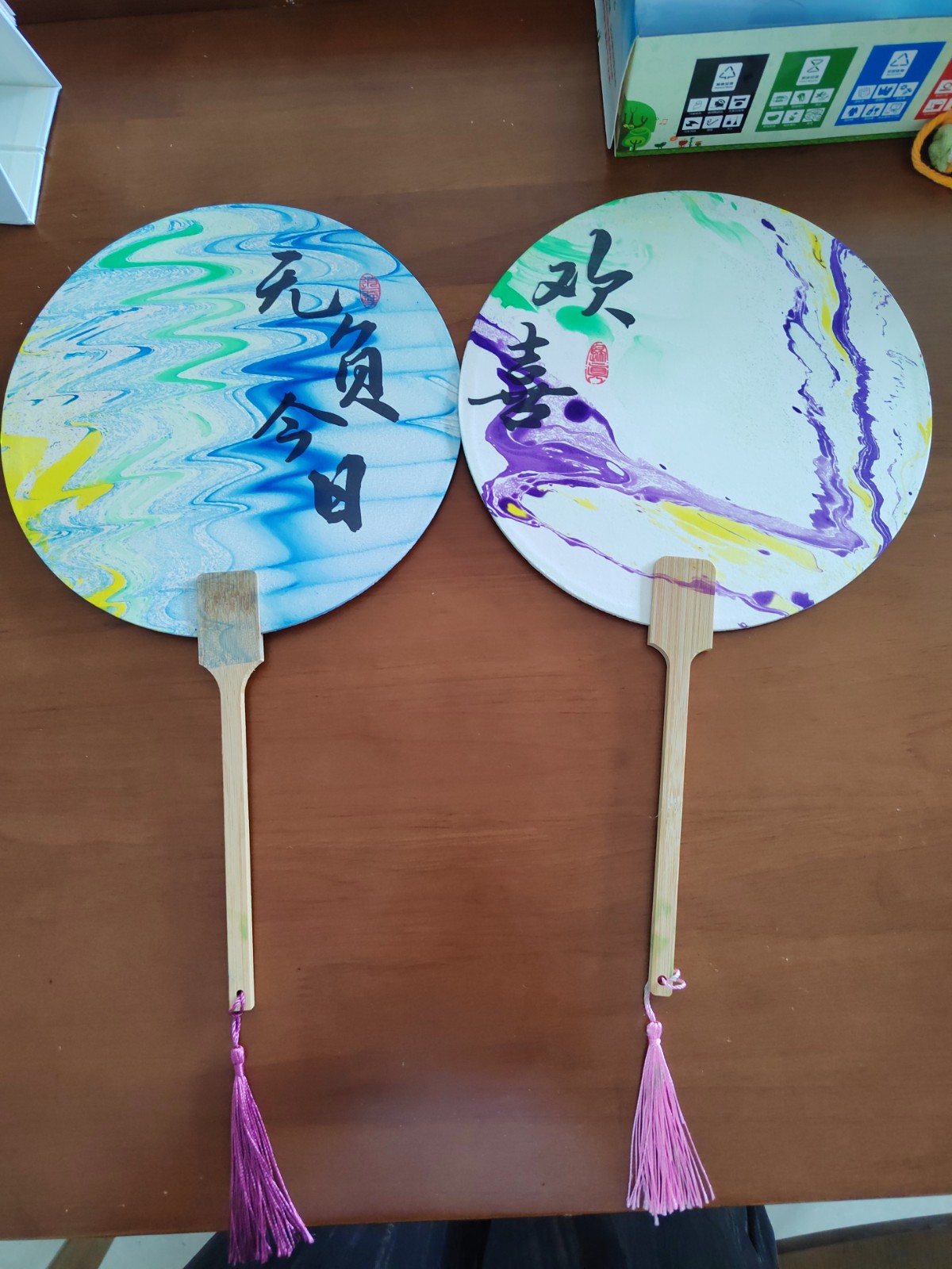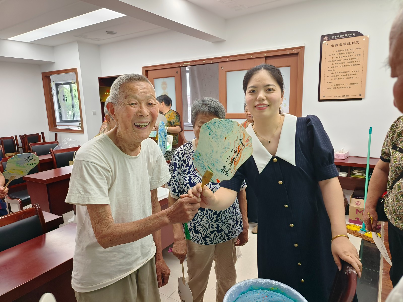 活动现场,妇联执委们为老人们介绍了漆画扇子的历史、种类以及漆画的基本技巧。随后,在老师的指导下,老人们开始了漆画创作。大家利用漆不溶于水的特质,以点、甩、弹、划等手法在水面绘出图,入水一色,出水万彩,每种不同配色,每样不同手法,都将原本朴素的扇面激发出不同的美丽,引得现场惊叹连连。一把把精美的漆画扇子呈现在大家面前,或清新淡雅,或浓墨重彩,大家纷纷感叹中华传统文化的博大精深。