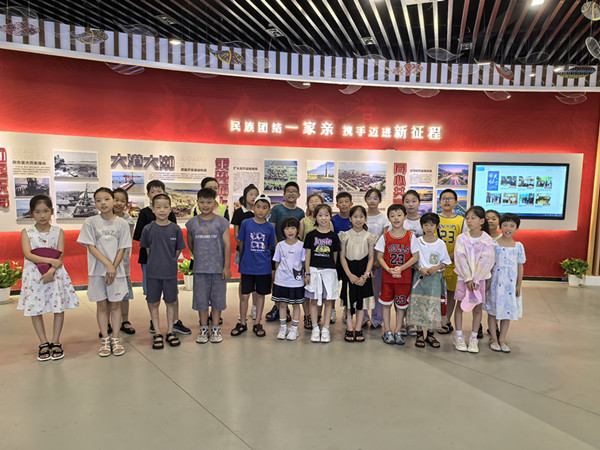 为增进青少年中华多民族文化的了解培养青少年的民族团结意识和爱国情怀,7月25日,陈华浦社区组织假日学校学生参观北仑区民族工作展厅