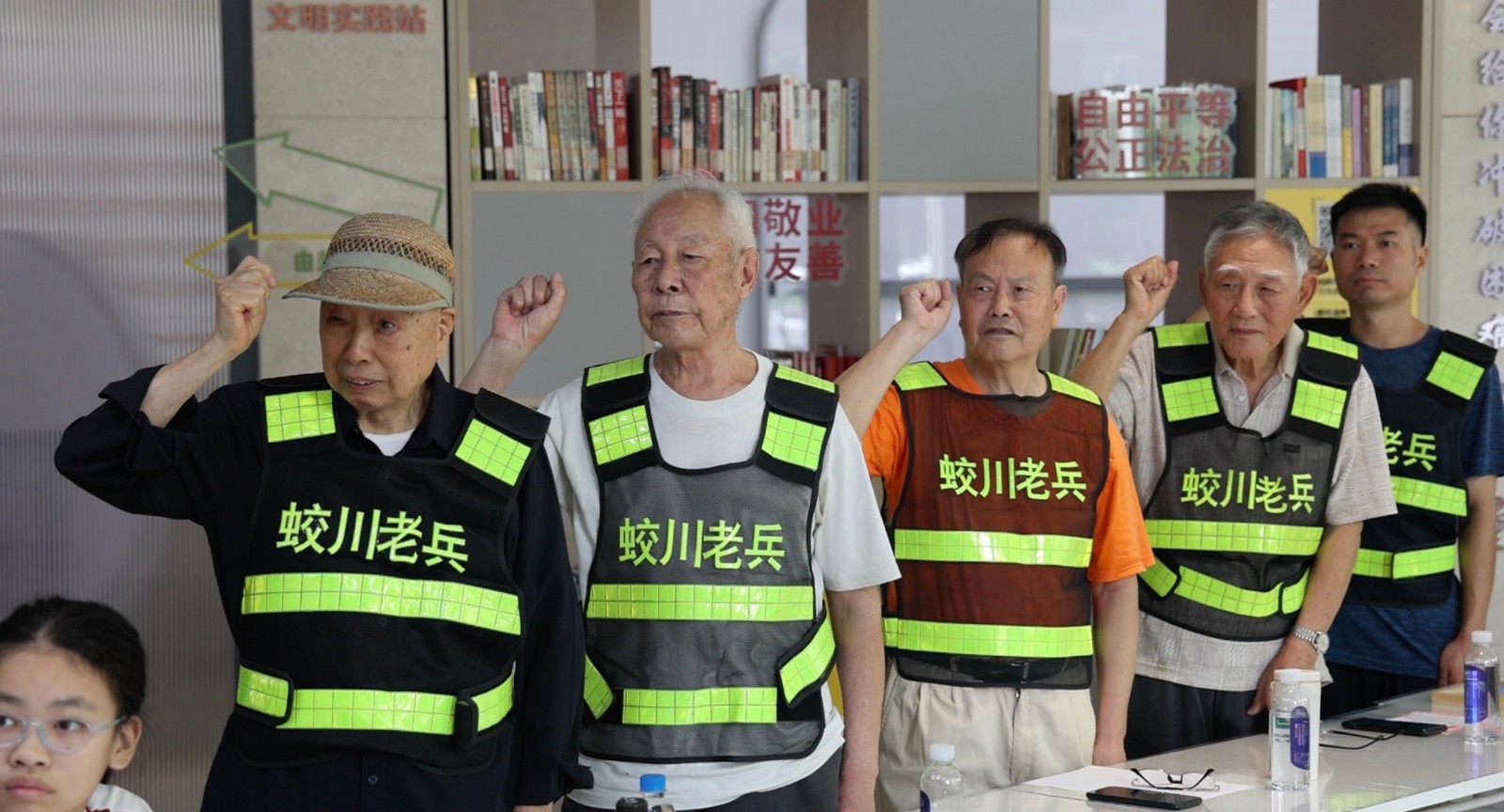 “向前向前向前!我们的队伍向太阳,脚踏着祖国的大地……”7月25日上午,蛟川街道未名社区响起一阵铿锵有力的军歌声。退役军人、辖区学生及军嫂代表们围坐在一起,共同庆祝中国人民解放军建军97周年。