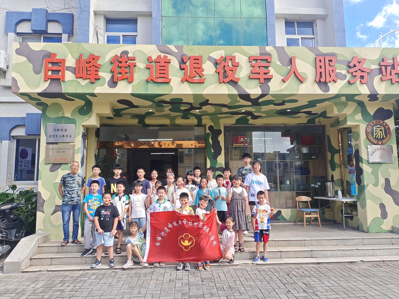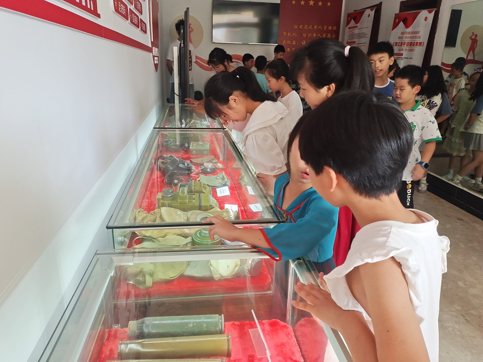 课程结束后,虞爷爷带领小朋友们参观了白峰街道退役军人服务站,服务站内展示了退出现役的军用器材、白峰革命先烈的事迹介绍等内容,虞爷爷给孩子们介绍了展示柜放置的军用物品以及相关用途,大家听得聚精会神,开阔了眼界,增长了知识。