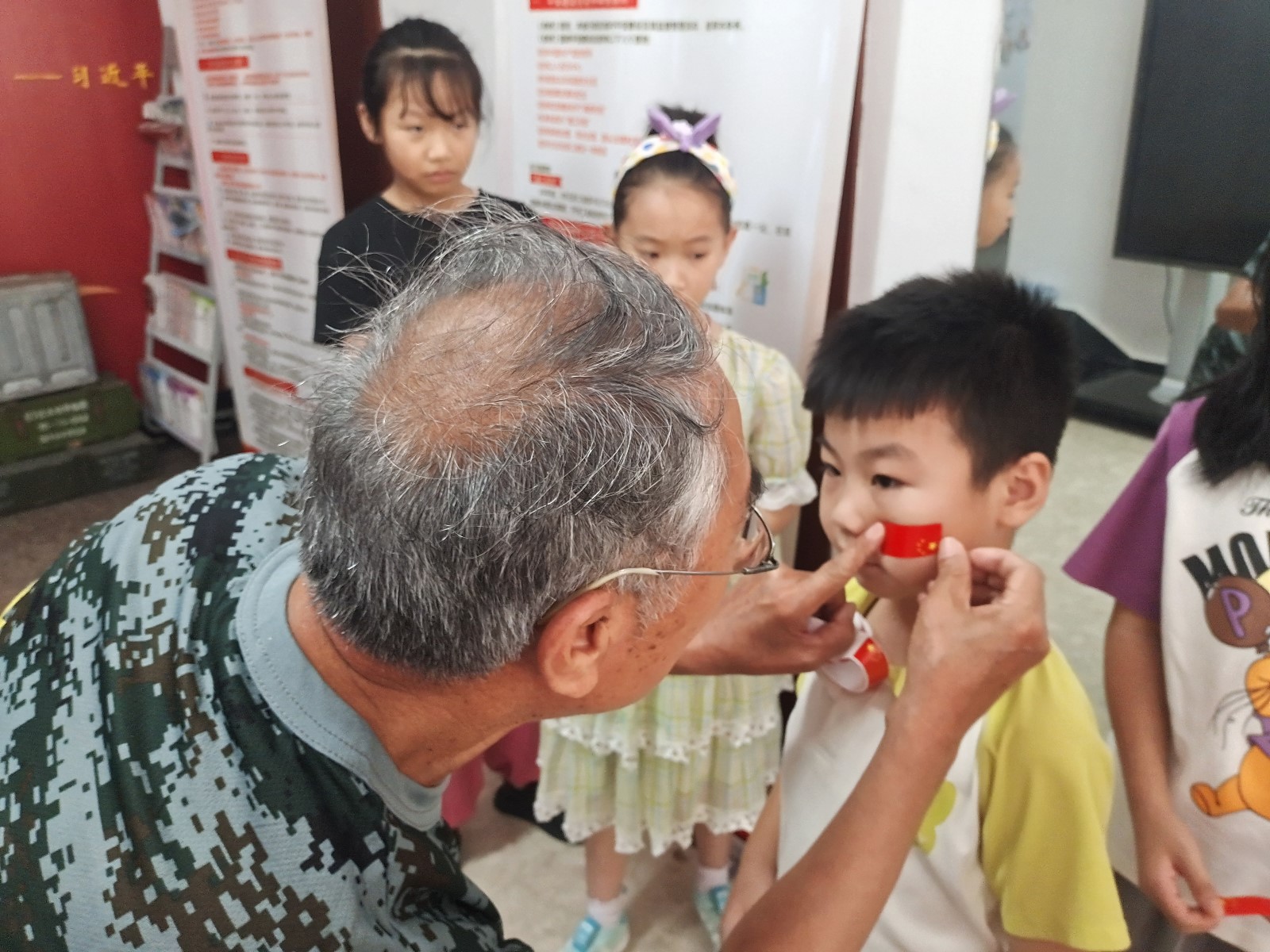 活动前期,老兵虞爷爷在充分了解峰城社区小朋友们的基础上,为每个小朋友的脸额上贴上难忘的小五星红旗,力求通过以多元化的课程设计、有趣有效地授课模式,激发青少年们的求知热情。虞爷爷带领青少年认识中华人民共和国国旗、中国共产党党旗、中国人民解放军军旗、中国人民解放军陆军军旗、中国人民解放军空军军旗、中国人民解放军海军军旗、中国人民解放军火箭军军旗、中国人民武装警察部队队旗、中国人民警察警旗、中国消防救援队队旗、中国共产主义青年团团旗、中国少年先锋队队旗等中国各类旗帜,重点讲述了
