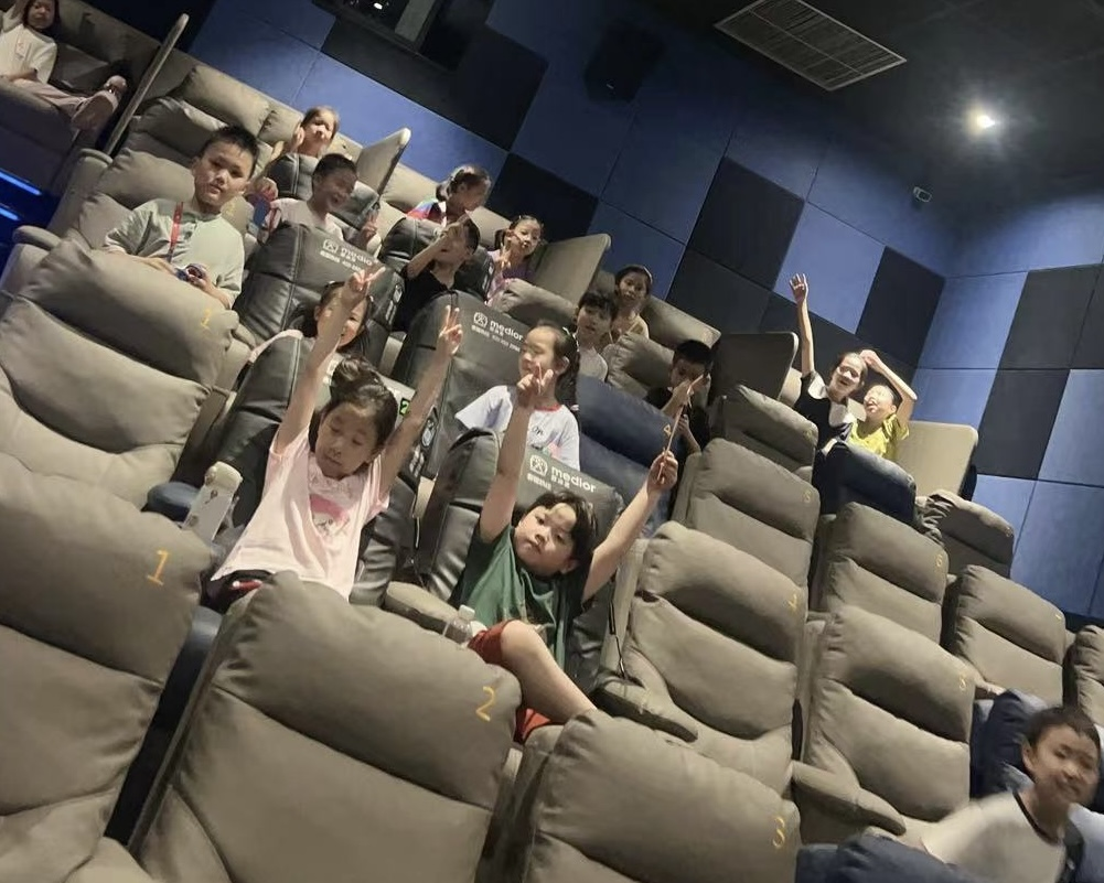 随着夕阳西下,影都逐渐热闹起来。孩子们脸上洋溢着期待的笑容,一同步入装饰得既温馨又充满童趣的放映厅。