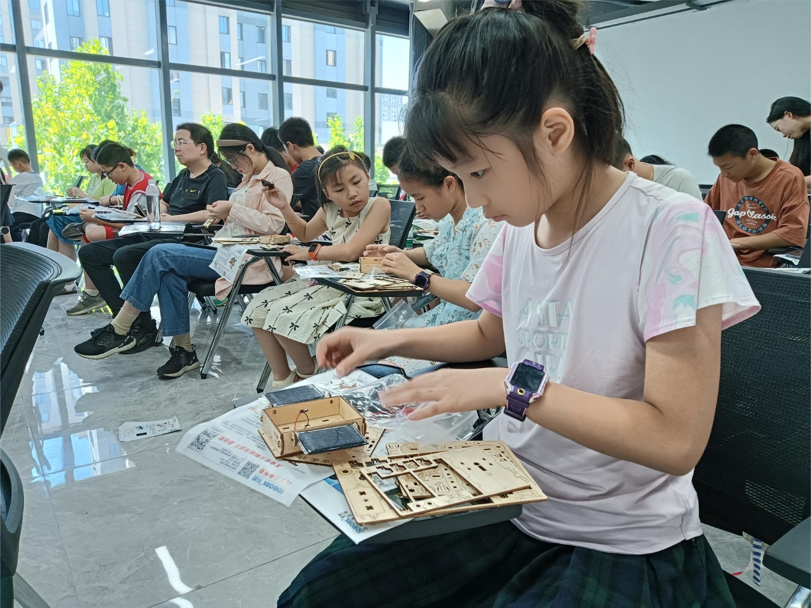 “玉兔号”的制作过程中,不仅可以锻炼动手能力,还能和父母交流、复习各个零件所展现的作用。在制作过程中,志愿者老师和网格员也会从旁指导,提供帮助。
