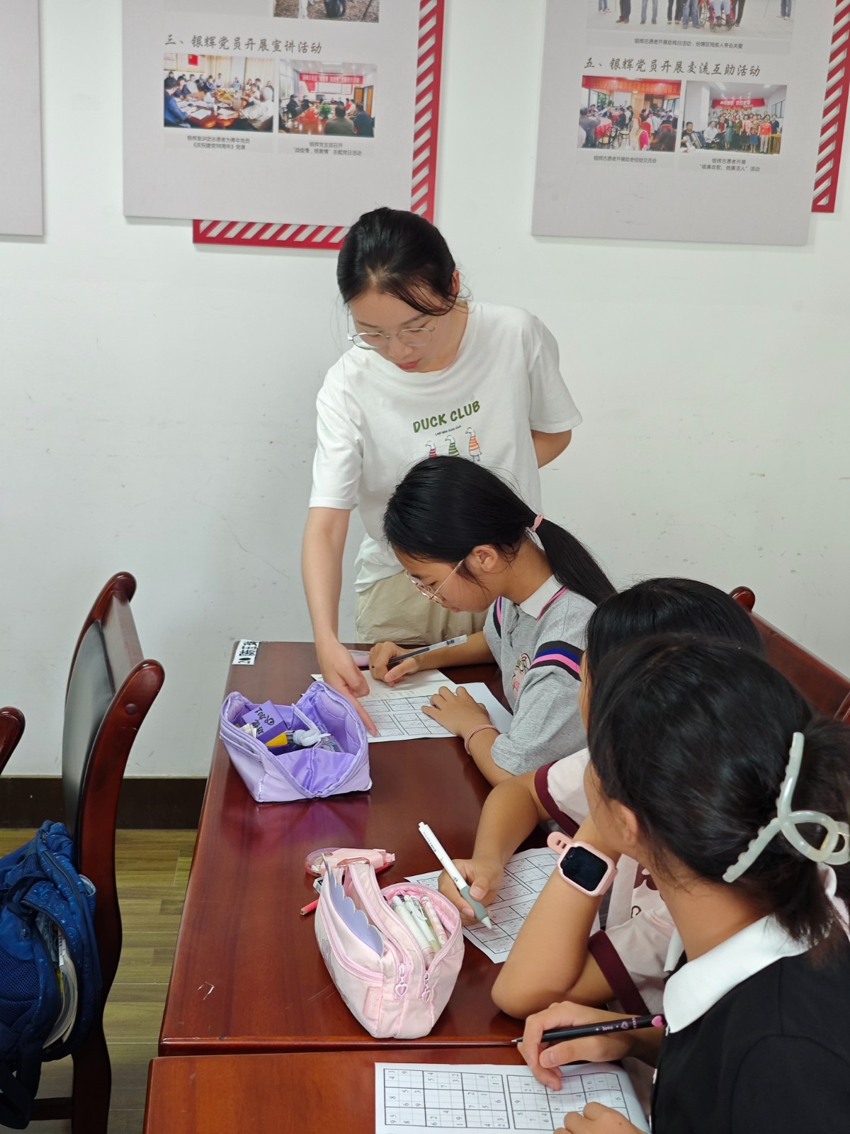 为了培养同学们地逻辑思维能力,7月24日上午,高田王社区假日学校邀请大碶小学的高佳敏老师开展了一节数独课。