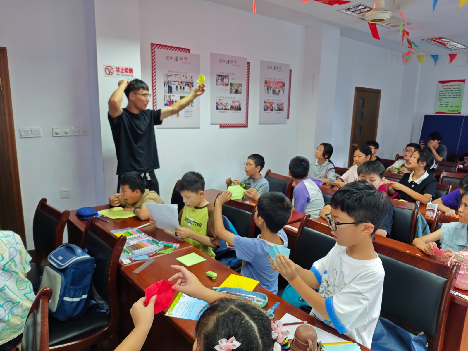 为了培养孩子们对折纸的兴趣爱好,让孩子们体验了自己创作的喜悦,更好地激发孩子的想象力和实践能力,7月24日上午,高田王社区假日学校邀请大碶小学的朱阿群老师开展了一节趣味折纸课。