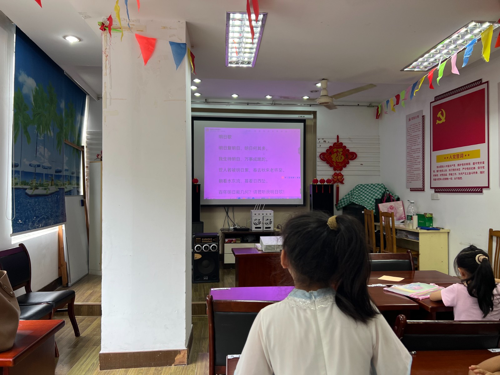 学生时期最离不开是国学经典文化。我们从小便受到唐诗宋词的熏陶。为了让假日学校的小同学们在暑假期间能够学习诗词,726日高田王社区邀请了大碶小学的语文教师陈荣荣陈老师,带着小同学们温习熟知的诗词。
