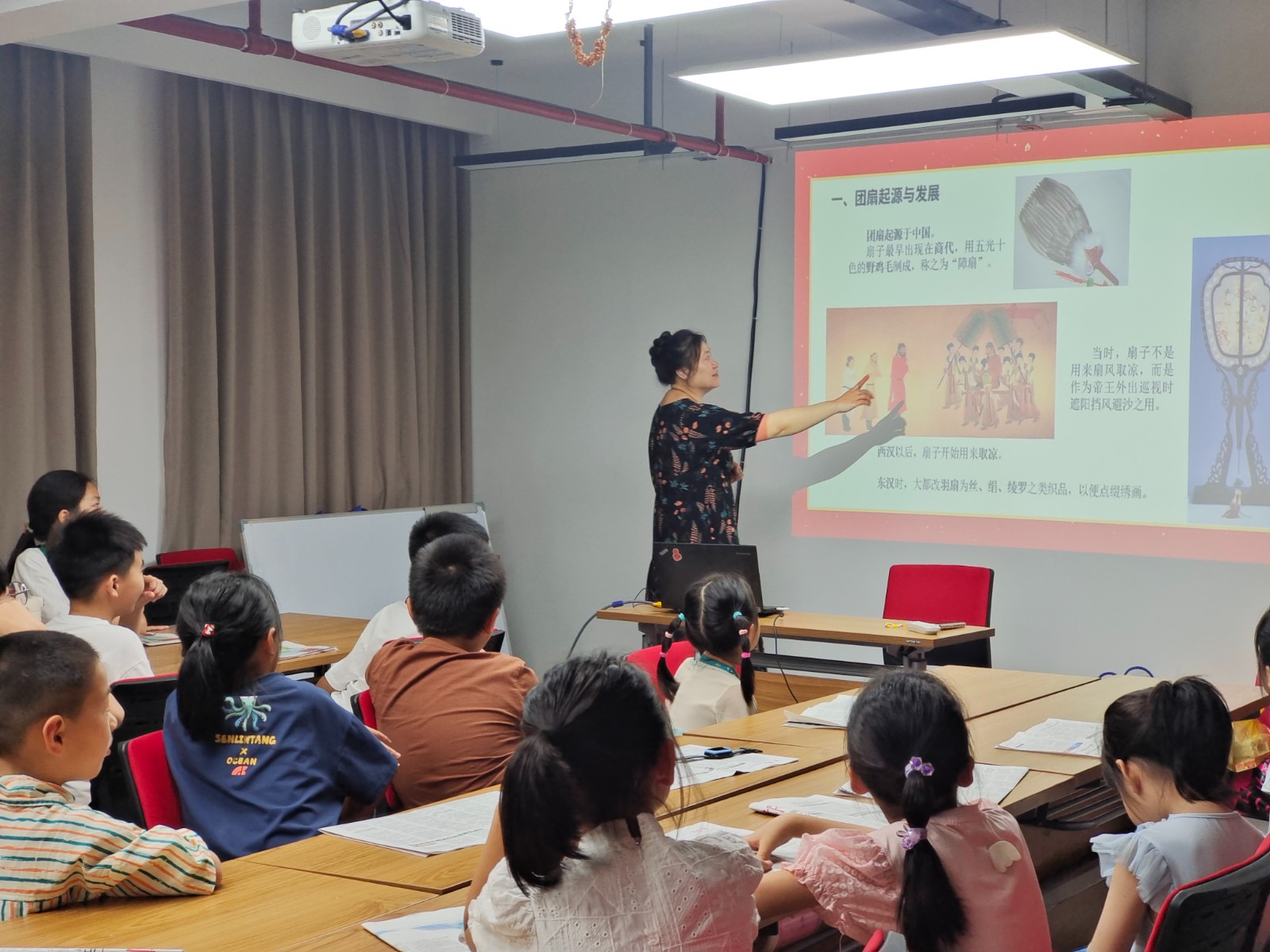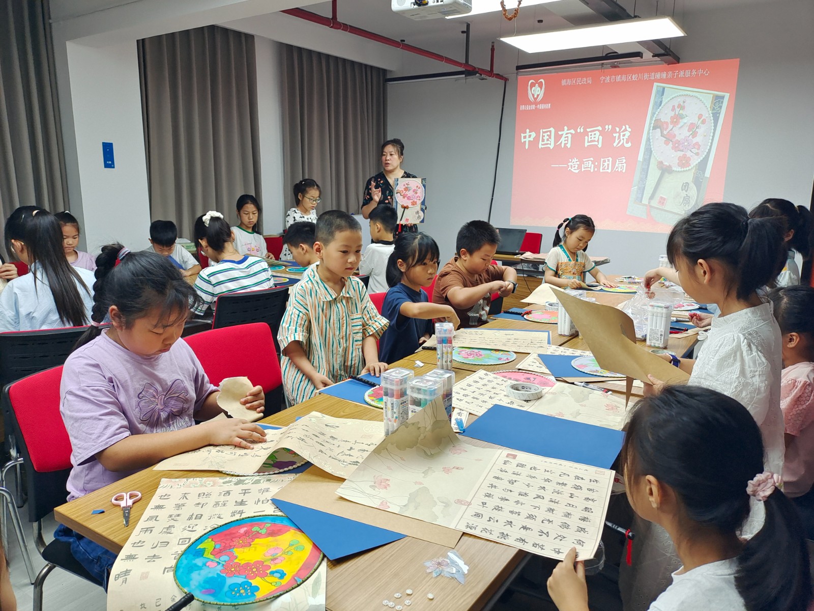 在中国的传统文化中,扇子不仅是夏日纳凉的工具,同时也承载着典雅与精致的文化内涵,被文人雅士称之为“怀袖雅物”。为丰富辖区内流动儿童的课余生活,传承中华优秀传统文化。7月19日上午,临江社区新时代文明实践站联合瞳瞳亲子派开展中国有画说——团扇造画活动。